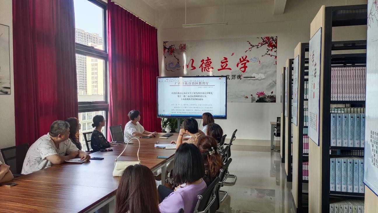 2023年6月6日上午8点,图书馆在西校区515室召开师德师风专题学习会议,全体工作人员参加会议。会上,王作先馆长带领大家共同学习了自治区教育厅办公室转发的教育部公开曝光第十二批7起违反教师职业行为十项准则典型案例,并希望每位教师知准则、守底线,自律自强,自觉践行良好师德,自觉树立良好师风学风。(毛琦帅摄)