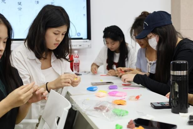 (互动环节中,同学们在制作手工作品)