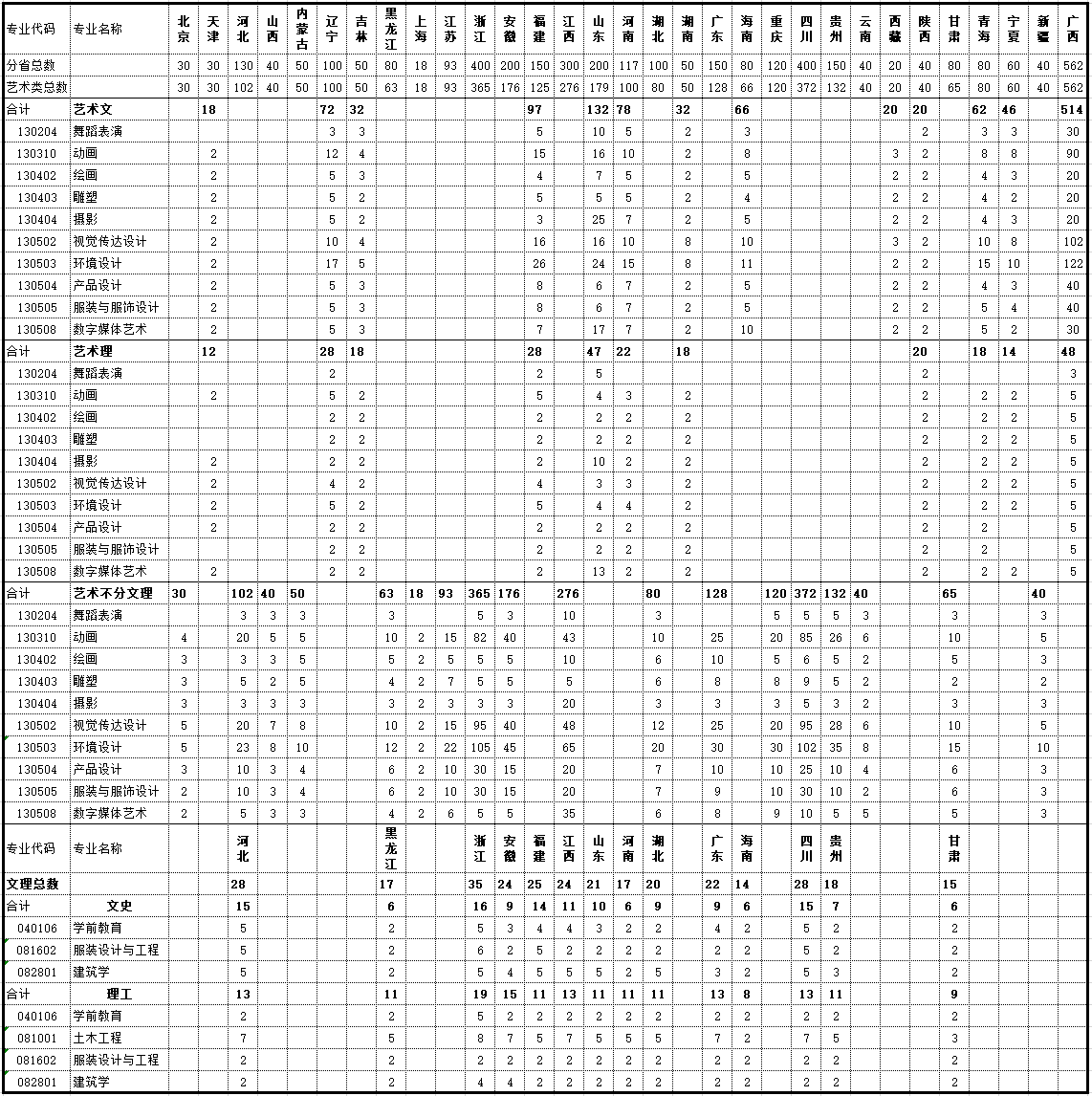 2018年分省分专业招生计划
