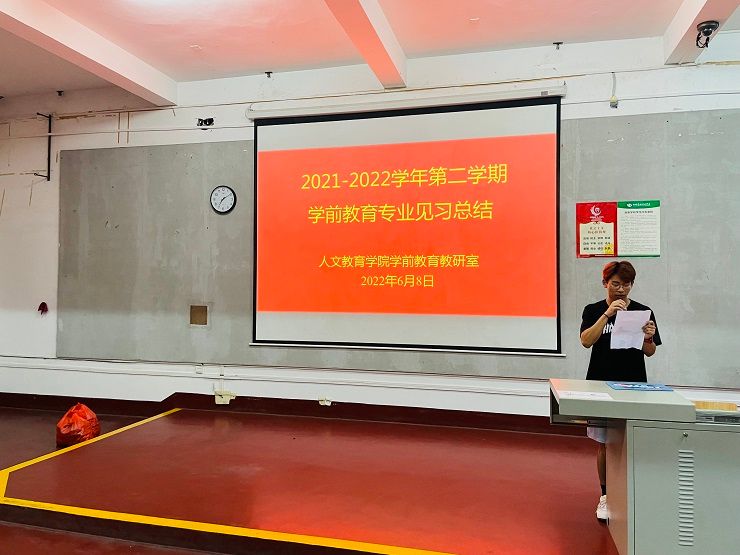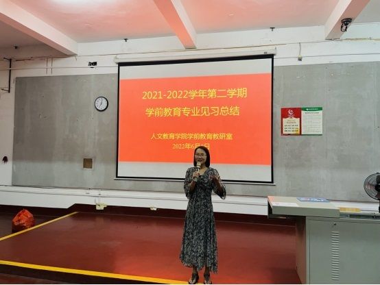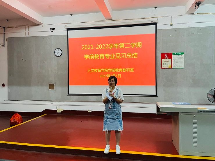 教育见习结束后,学前教育教研室于6月8日晚组织学生召开2021-2022学年第二学期学前教育专业见习总结会。总结会上,学生代表上台发言,对本次教育见习的所感所思所获进行演讲。冯小霞老师总结本次教育见习中同学们表现的优点及不足,勉励同学们在下一次教育见习中继续发扬优势,改正不足,争取更大的进步。最后,蒙剑英老师对本次见习工作进行点评,对后面学生们学习提出希望。希望同学们总结经验,善于自省,以每一次的教育见习为成长的阶梯,一步步踏出成长的步伐。(照片:学前教育教研室)