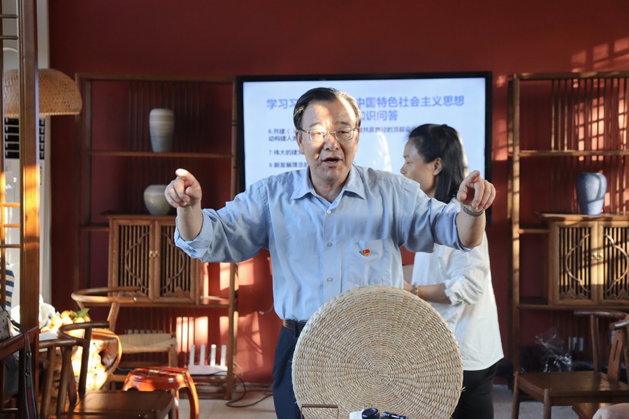 最后,开展党员现场问答互动活动。党支部书记罗秋梅围绕着习近平新时代中国特色社会主义思想主要内容提出了十个问题,以“传物到人 即停即答”的方式进行,党员积极踊跃参与,现场氛围十分融洽和活跃,正确回答问题的党员同志也获得了学习用品。党课环节在退休党员刘兴仁副教授领唱的红歌《学习雷锋好榜样》和毛主席语录歌《下定决心,不怕牺牲,排除万难去争取胜利》嘹亮悦耳的歌声中、雷鸣般掌声中欢快地结束。