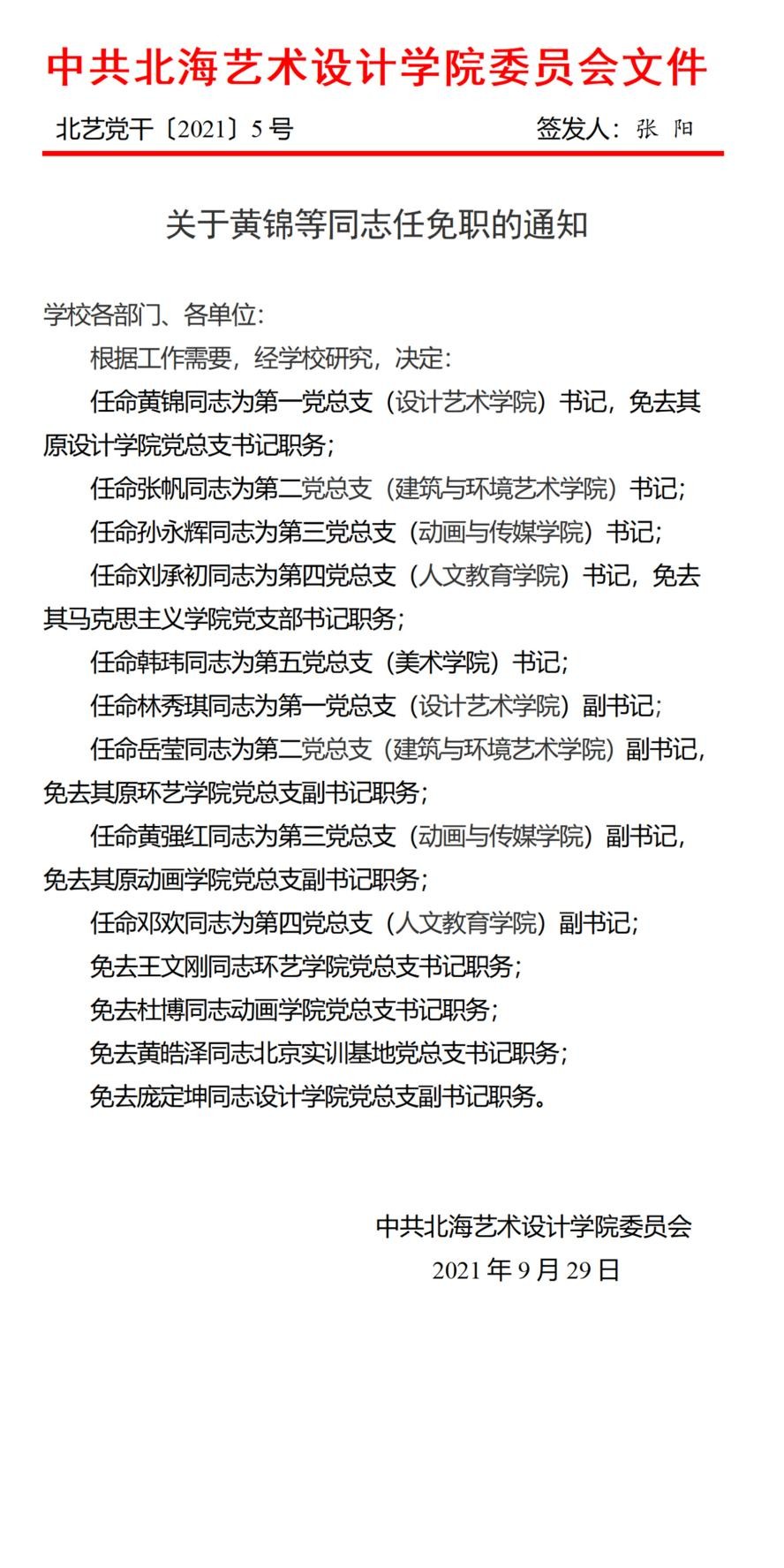 转发学校党委《关于黄锦等同志任免职的通知》