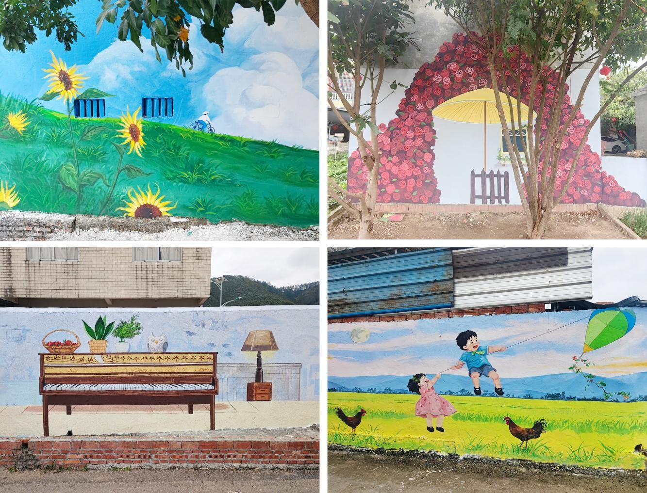 阳光洒在洁净的白墙上,志愿者们围在一起,手持画笔和颜料,专注地在村民需要绘制墙绘的墙面上勾勒出五彩斑斓的图案。小心翼翼地描绘高处的细节,认真的涂抹墙面背景色。空气中弥漫着淡淡的颜料味道,混合着大家的欢声笑语。手绘墙,以其独特的艺术魅力,为当地乡村振兴绘就了一幅充满诗意与希望的画卷。其独特的艺术语言,将乡村的自然风光、历史文化与现代创意完美融合。以墙为纸,以心为笔,勾勒出一幅幅充满诗意的画卷。