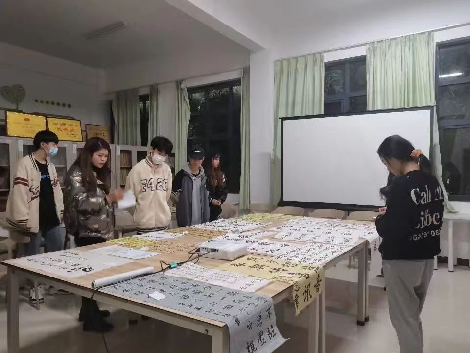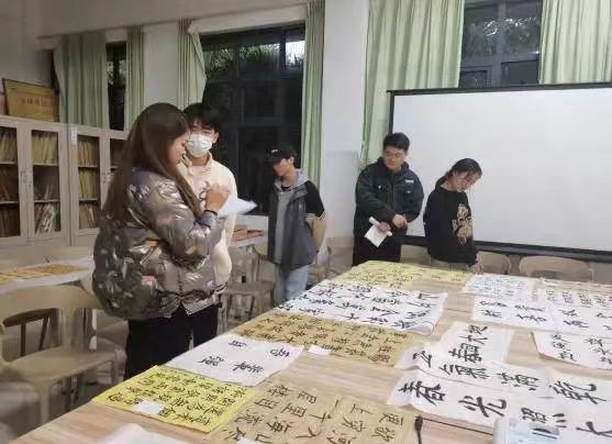 老师们相互交流,仔细品读作品并为本次活动最终评选出届时参加活动的志愿者。 此次活动,为有书法爱好的大学生提供一个展示自我及交流的平台,不仅是对中华民族传统民俗文化的传承,也是对青少年精神文明素养的一种提升。