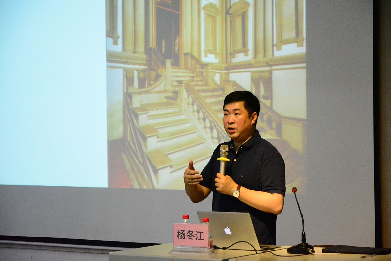 讲座一开始,杨冬江教授详细为我们分析了环境设计专业的学习阶段以及发展方向。随后,他用图片展示了不同时代建筑发展的特点,使同学们开阔了眼界,增长了见识。