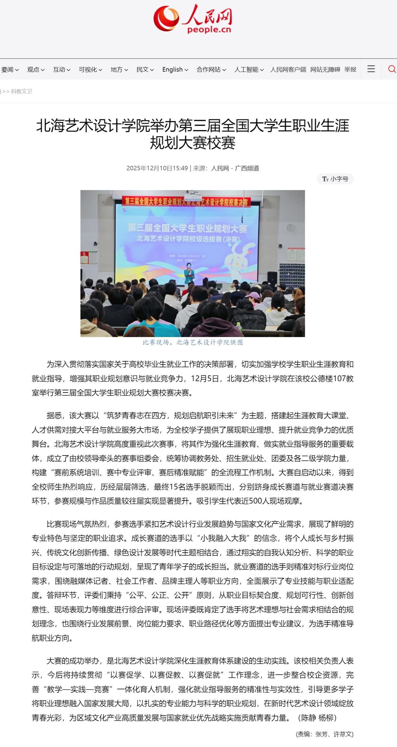 人民网:北海艺术设计学院举办第三届全国大学生职业生涯规划大赛校赛