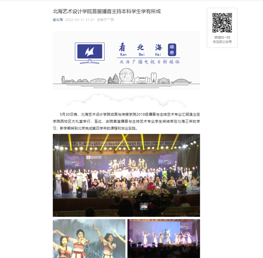 北海日报:北海艺术设计学院2019级播音与主持艺术专业汇报演出成功举办