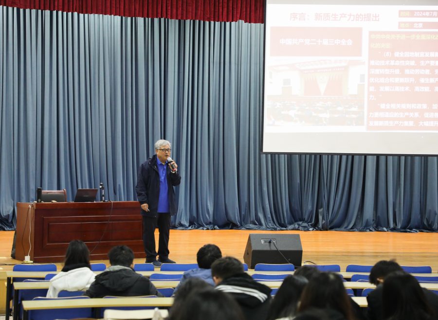 在姜献生教授的课堂上,他重点阐述了新质生产力在推动时代新发展中的重要作用,并鼓励大学生们要发挥自身专业优势特点,敢于担当作为,筑牢实干精神,做到与时俱进、开拓创新,在专业领域发光发热。他强调,就业是大学生面临的重要问题之一,要树立正确的就业观念,多渠道、多层次、多形式地寻找就业机会,尽快实现自己的职业梦想。姜教授的授课风格生动有趣,赢得了学生们的阵阵掌声。