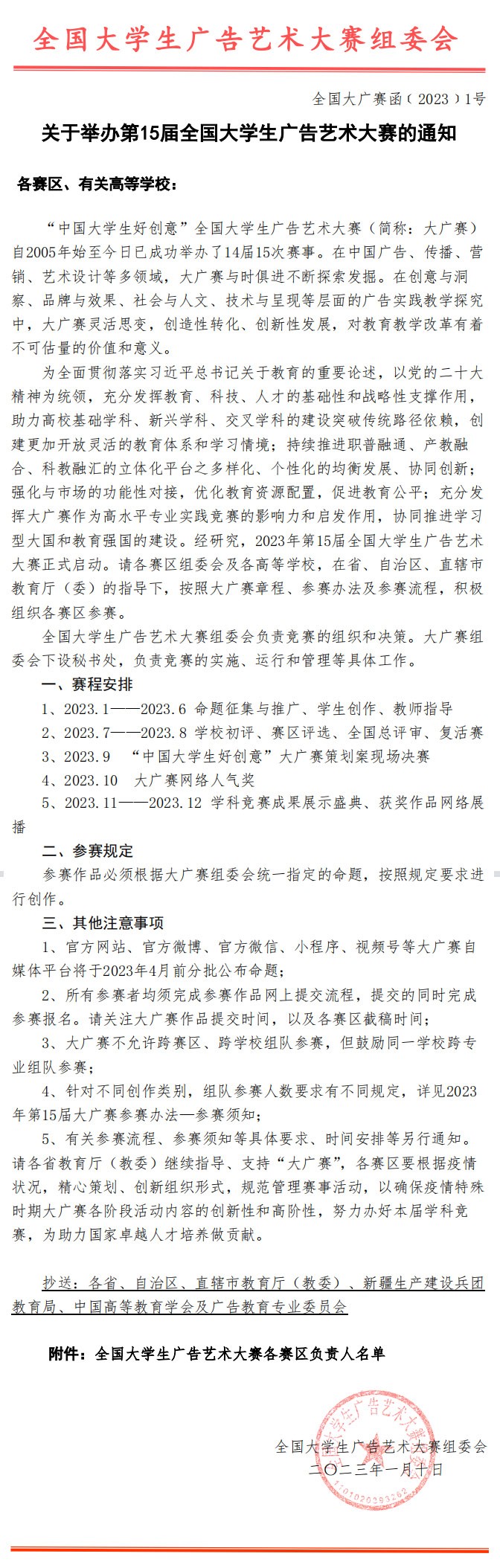 关于举办第15届全国大学广告艺术大赛的通知