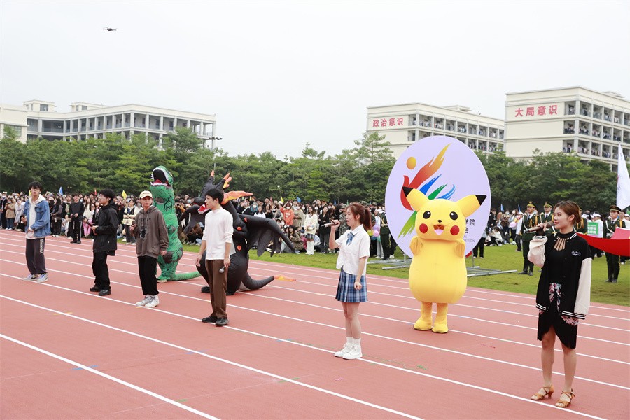 开幕式上,国旗队、护旗队、会徽队挺拔身姿,高举国旗、校旗、运动会会徽,迈着矫健的步伐,阔步开场;紧随其后的彩旗队,面面彩旗迎风飞扬,热烈喜庆。紧接着,各二级学院、裁判、社团方阵有序入场,朝气蓬勃的面孔青春洋溢,轻巧欢快的步伐活力满满,每个方阵结合自身特点带来特别表演,丝丝入扣的情景剧、婀娜多姿的舞蹈、英姿飒爽的军体拳、各具特色的社团走秀展示,精彩连连,氛围拉满。
