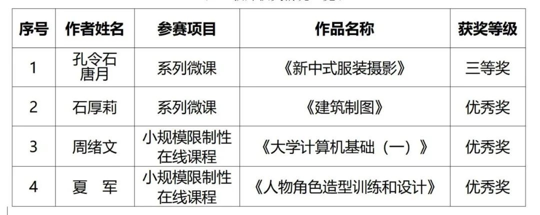 近日,自治区教育厅公布了第二十一届全区高校教育教学信息化大赛获奖名单(桂教教师〔2022〕69号),我校美术学院孔令石教师团队的作品《新中式服装摄影》荣获系列微课组三等奖,《建筑制图》《大学计算机基础(一)》《人物角色造型训练和设计》等三件作品荣获优秀奖。
