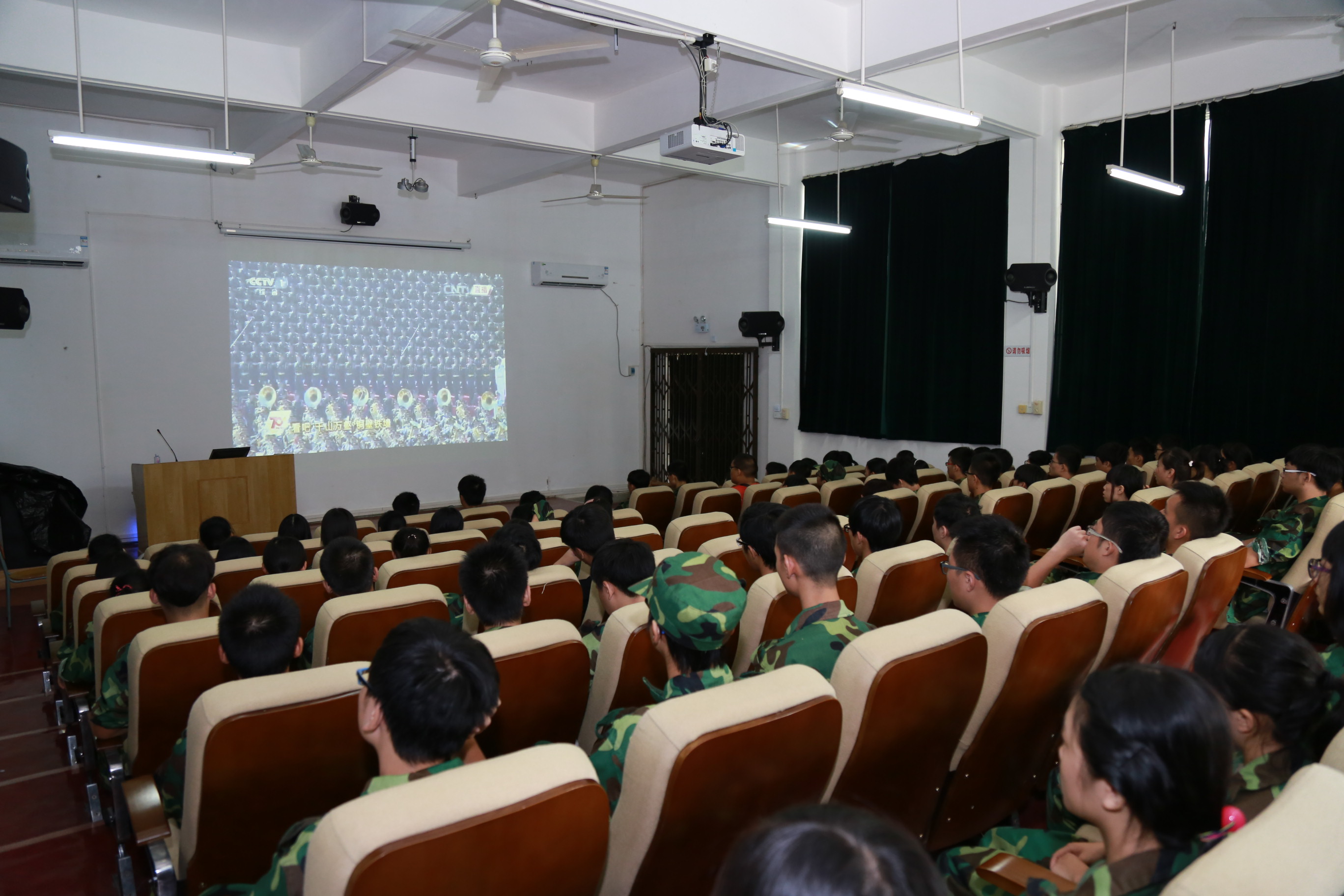 纪念中国人民抗日战争暨世界反法西斯战争胜利70周年大会和阅兵仪式今天上午在北京隆重举行。上午9点30分,为弘扬伟大的抗战精神,激发同学们的爱国热情,增强实现中国梦的信心,我院组织了15级专科新生通过网络直播观看了庆祝大会和阅兵仪式直播。