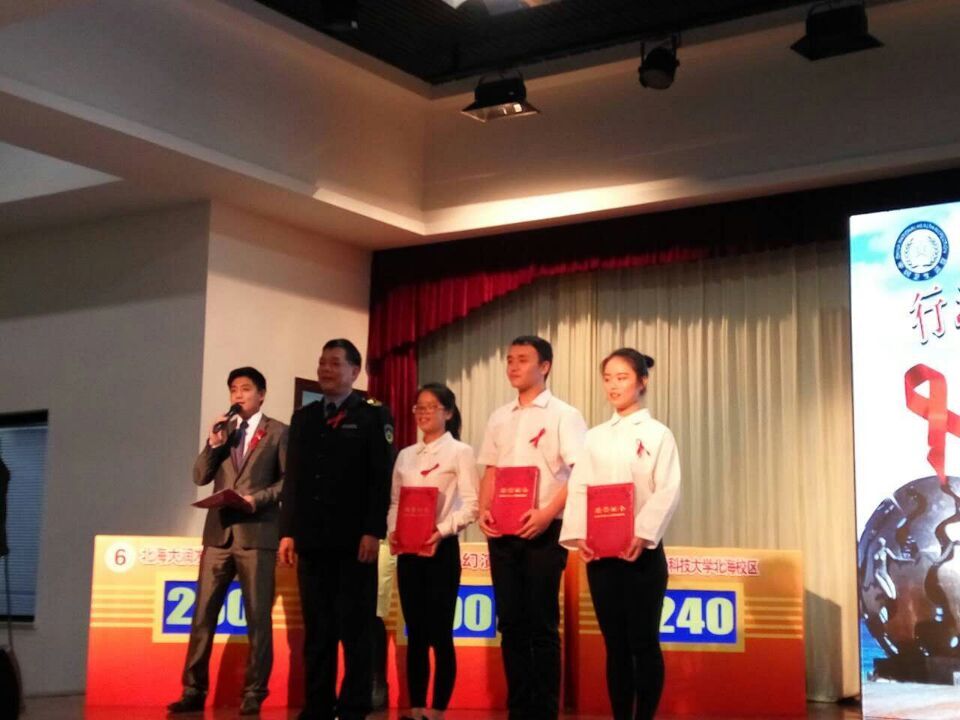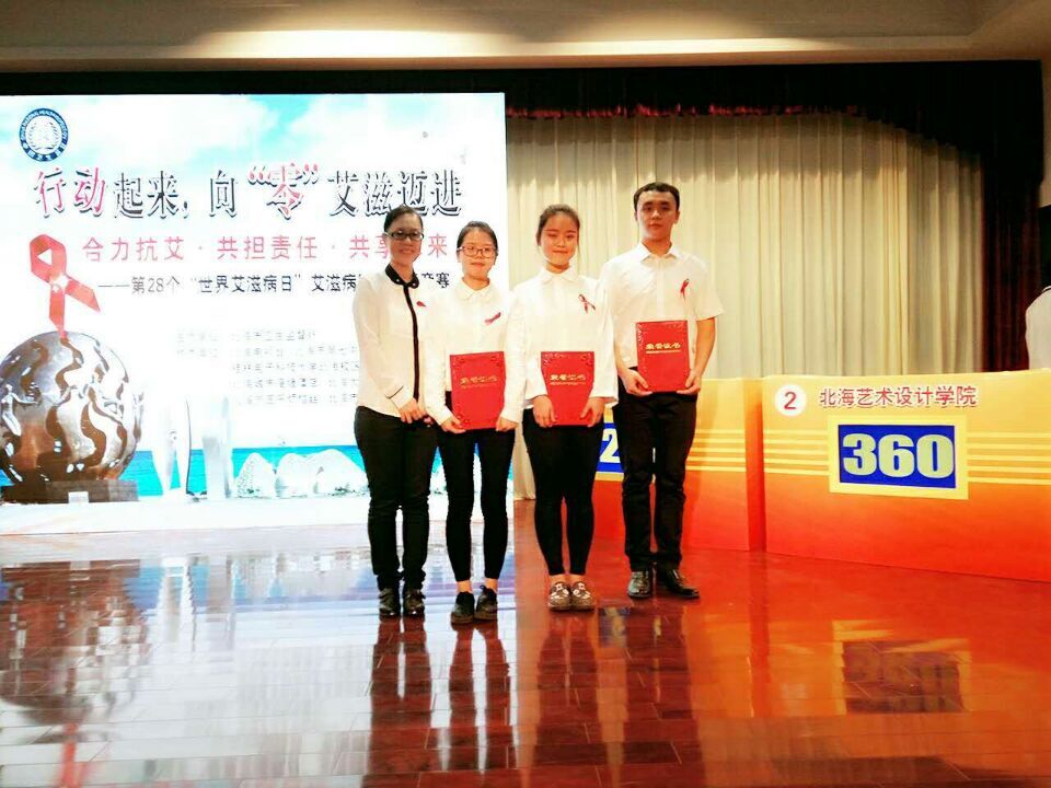 为纪念第28个世界艾滋病日,在社会中普及艾滋病防控知识,提升人民群众防治艾滋病的法制意识,北海卫生监督于2015年11月30日在北海七中举办了《广西艾滋病防治中心条例》知识竞赛,我院由周晓敏老师带队,由赵鸣宇、黄玥、姜杭三名学生组成代表队应邀参加此次活动。