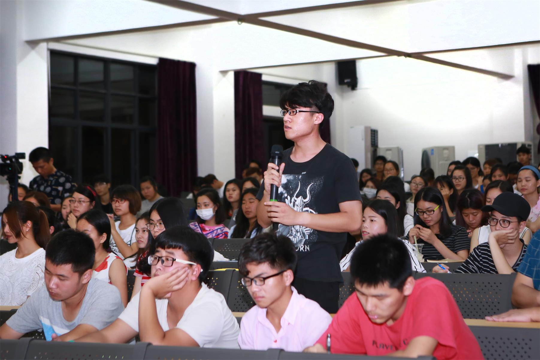 讲座最后,廖汀还与现场同学互动。同学们踊跃提问,廖汀均做出了详尽的回答。