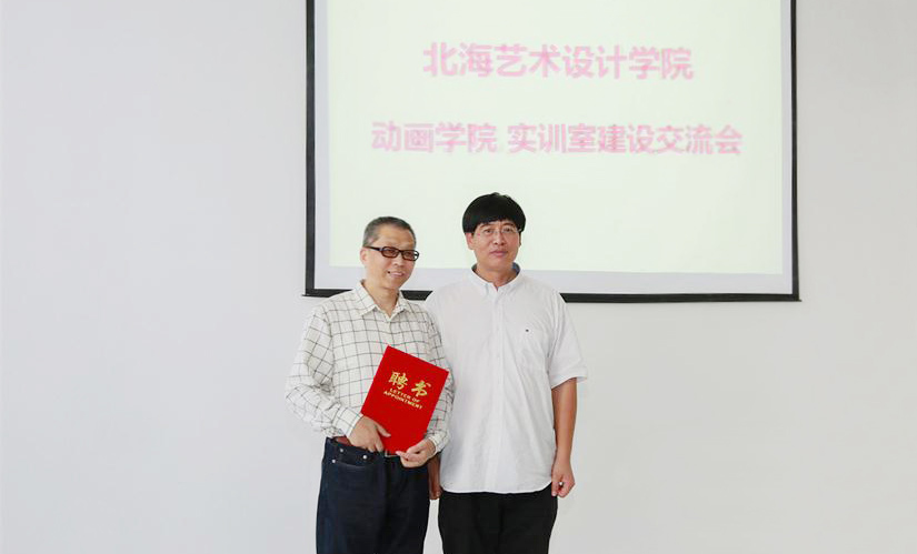次日,朱毓平教授参观了动画学院实训室并与我院进行学术交流。朱教授分享了动画领域和项目制作的经验,对今后我院实训室建设和动画学院的教学发展提出建议。学院副院长郑超在交流会上为朱毓平颁发了客座教授的聘任证书。