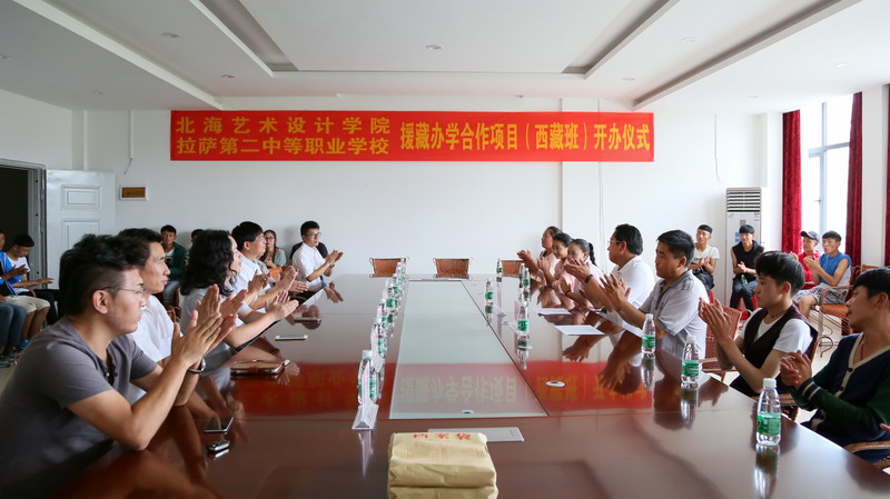 9月11日,我院在西校区行政楼会议室举行了隆重的开班仪式。拉萨二职党委书记朗加、我院党委书记贺争平、学院董事郑超、学院党委副书记、副院长林秀琪、学院党委副书记、副院长彭仁和学院副院长胡胜、教务处孙竹清处长、邱杰副处长、动画学院陶立阳副院长、二职招办副主任罗桑等和来自拉萨二职的50名同学一同参与了本次仪式。仪式上,我院党委书记贺争平代表学院对来自拉萨二职的同学们表示了热烈的欢迎。贺书记表示,希望西藏的老师和同学能尽快地适应北海的气候、适应北艺的学习氛围,感受北艺特色的校园文化,与我院师生进行更好的学习与交流。贺书记说,本次与拉萨二职的合作项目不仅是我院发展的重要体现,更是我院为国家、为社会服务迈出的重要一步,希望这次合作能让同学们更好的成长,为民族大家庭的融合增添新的活力。