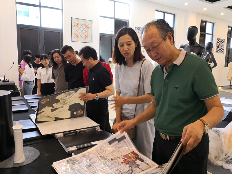 (评审团专家参观我校服装学院展厅)