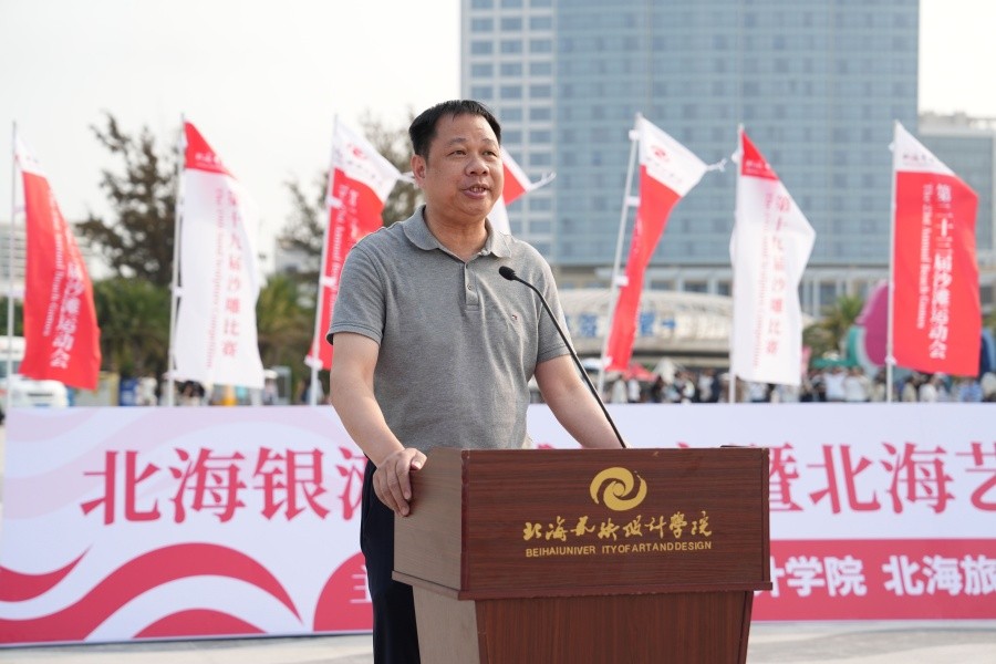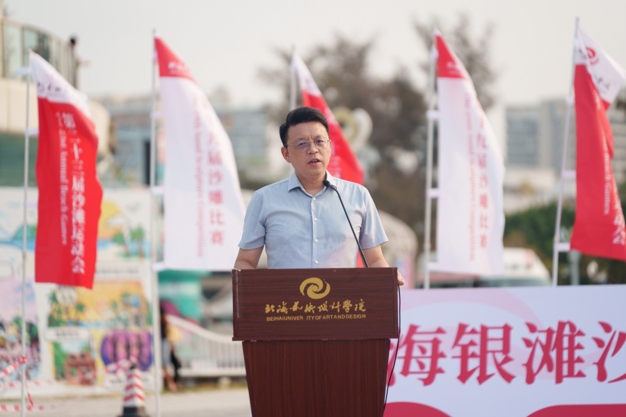 副校长陶立阳在致辞中表示,学校坚守“道德为本、艺术求精”办学理念,始终高度重视体育工作和职业素养的提升,已连续多年在北海银滩举办沙滩运动会与沙雕比赛,深耕体育育人与实践教学融合。活动培养学生综合能力,学以致用,既彰显 “团结第一、健康第一、参与第一”的体育精神,更实现传统创意与数字智慧的碰撞,展现新时代青年的想象力与创造力。在AI技术蓬勃发展的今天,艺术创作边界不断被打破,为艺术插上了腾飞的翅膀,体育承载着中华民族伟大复兴的梦想,陶立阳副校长寄语师生,体育精神与艺术追求一脉相承,希望广大学子以赛事为契机,在拼搏中锤炼意志、在创作中发挥艺术天赋,表现美、体验美、享受美,将青春活力转化为奋斗动力,为学校高质量发展与祖国建设贡献北艺力量。