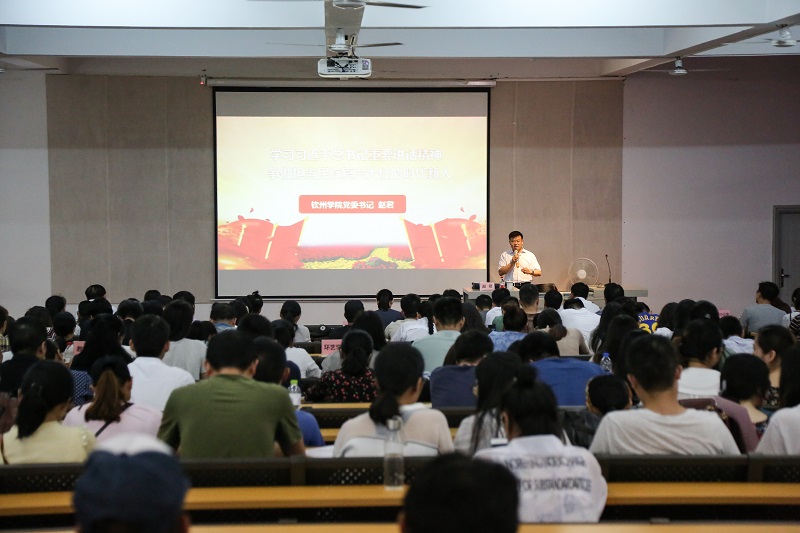 为深入学习宣传贯彻习近平总书记在北京大学师生座谈会和纪念马克思诞辰200周年大会上重要讲话精神,6月14日下午,我校开展“学习新思想千万师生同上一堂课”活动。钦州学院党委书记赵君教授和广西民族大学马克思主义学院院长陈媛教授共同为我校300多名教职员工授课。活动由我校党委书记贺争平主持。