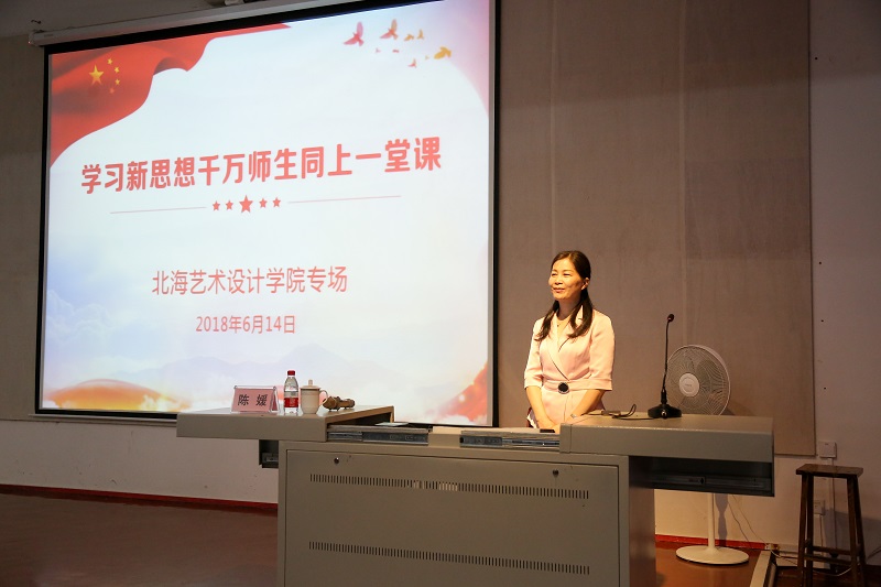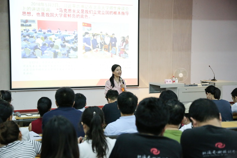 (广西民族大学马克思主义学院院长陈媛教授授课现场)