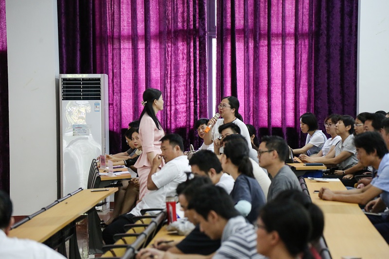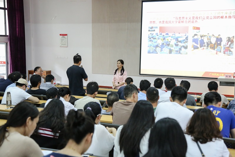 (广西民族大学马克思主义学院院长陈媛教授与我校教师互动)