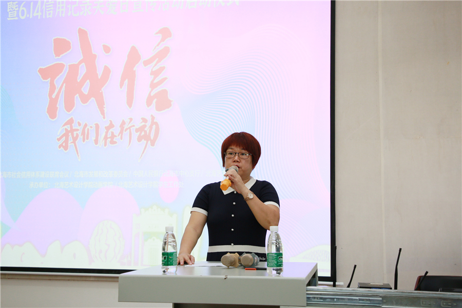 6月12日下午16时,由北海市社会信用体系建设联席会、北海市发展和改革委员会、中国人民银行北海市中心支行携手北海艺术设计学院举办的2020年北海市“征信·创城杯”诚信主题漫画创作比赛暨6.14信用记录关爱日宣传活动启动仪式在我校西区伦理楼107隆重举行。中国人民银行北海市中心支行副行长徐 斌,北海市发展和改革委员会副调研员林超霞,北海市发展和改革委员会信用督导科科长杨禾泽,中国人民银行北海市中心支行征信管理科科长毛卫东,我校副校长、党委副书记彭仁,副校长邱杰及二级学院、学工处相关领导,北海各银行征信业务牵头部门负责人出席了启动仪式。