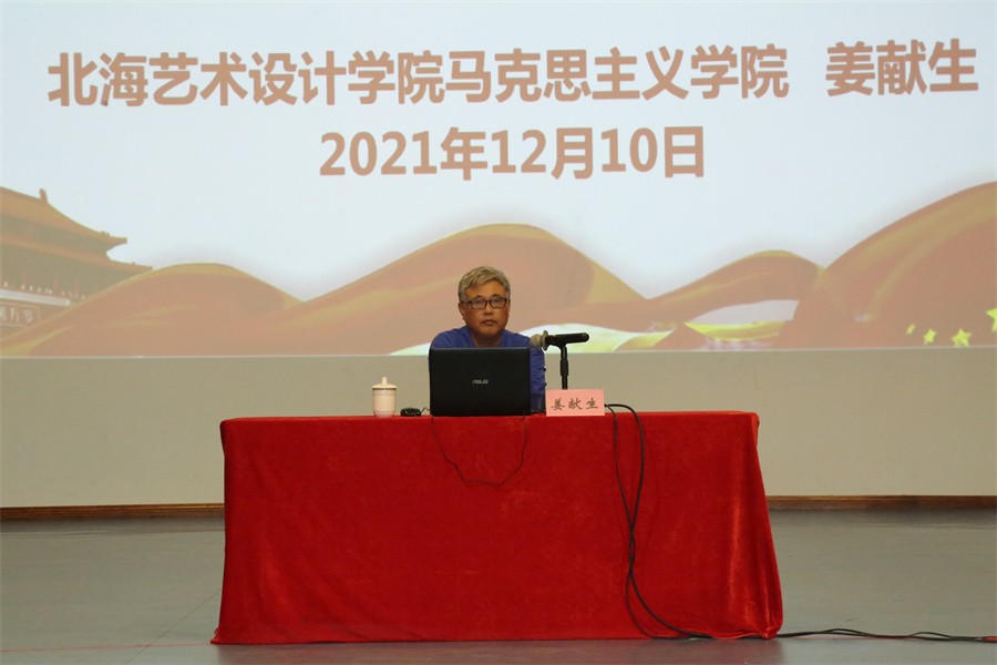 近日,我校于西校区大礼堂开展学习宣传贯彻党的十九届六中全会精神宣讲报告会,学校克思主义学院院长姜献生教授以《认真学习深刻领会中国共产党关于历史问题的三个决议》为题作专题宣讲。报告会由学校党委副书记韦静月主持,学校中层以上领导干部、全体师生党员300余人参加。