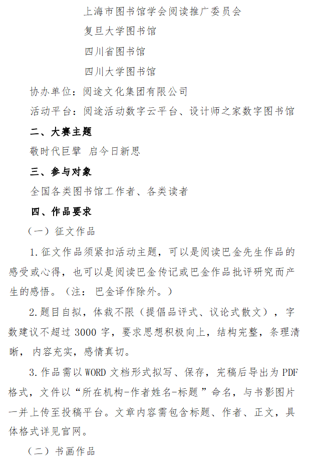 关于组织参加“品读巴金”阅读创作大赛的通知