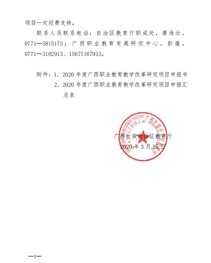 自治区教育厅关于公布2020年度 广西职业教育教学改革研究项目的通知