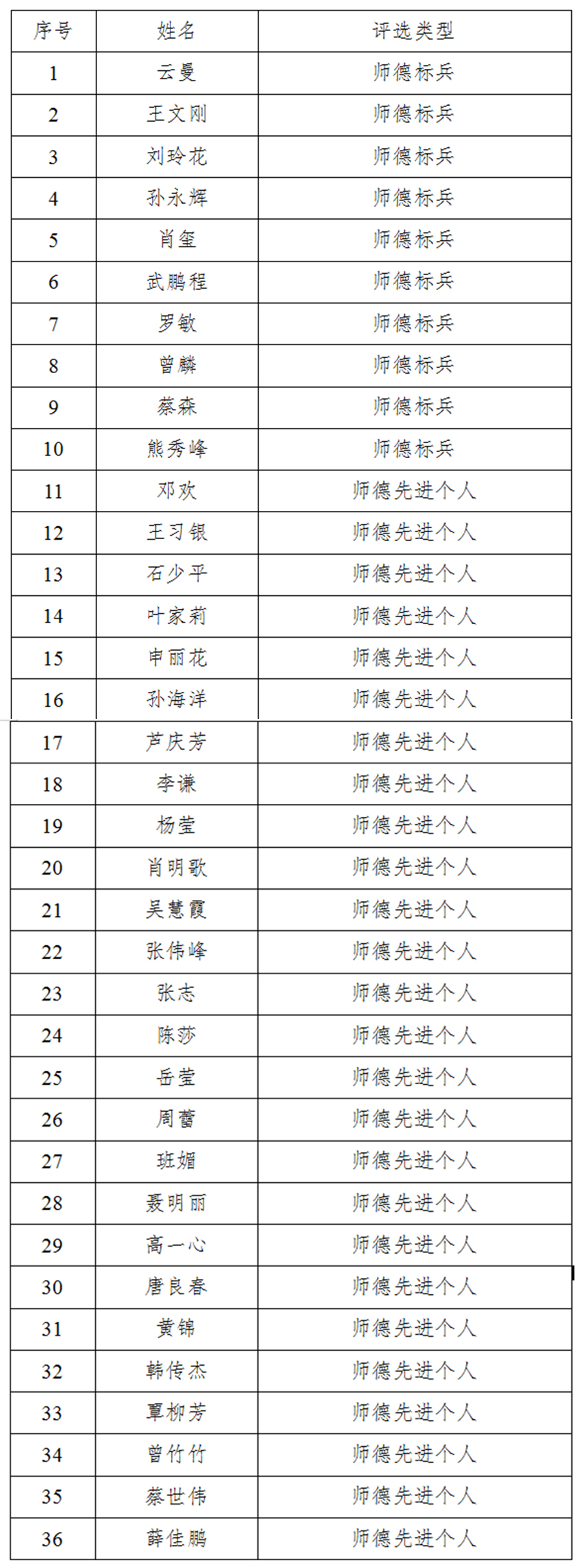 师德标兵及师德先进个人名单