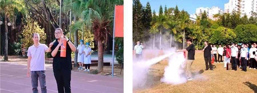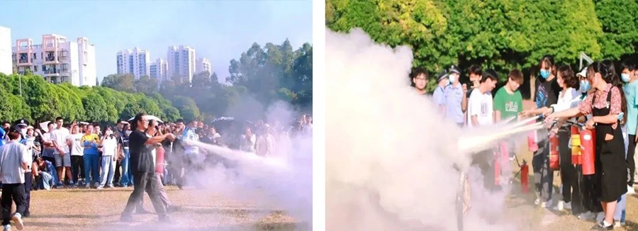 首先由刘朝雄副校长向同学们讲解了宿舍用电安全要求、干粉灭火器使用方法、火灾典型案例等内容,让大家了解到火灾的危害性,并掌握了防火、灭火的常识,学会报火警,且懂得逃生自救。在实地演练环节,老师和同学们都积极参与对灭火器的科学、规范实操,在实践演练中强化消防安全意识,提高师生的防火、灭火能力,切实把安全教育落到实处。