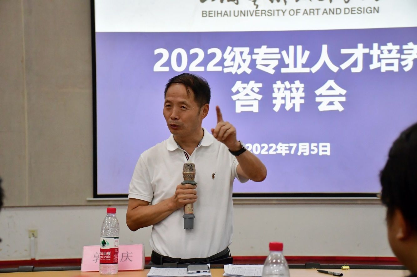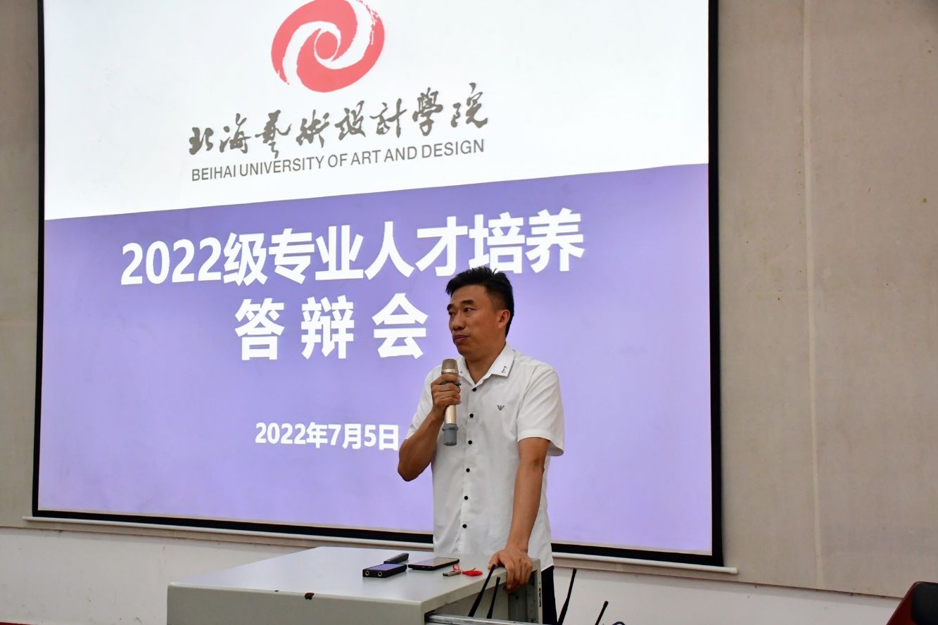 为进一步优化我校本科专业人才培养方案,提高人才培养质量,7月5日,北海艺术设计学院召开了2022级本科专业人才培养方案答辩会。学校特邀桂林电子科技大学郭庆教授莅临现场指导,北海艺术设计学院副校长陶立阳、副校长胡胜、副校长王斌、副校长彭仁、副校长邱杰、教务处处长武鹏程、教学质量监控办公室主任孙竹青、各二级学院正副职领导、专业负责人及专业教师等参加了会议。会议由教务处副处长吕雅婷主持。