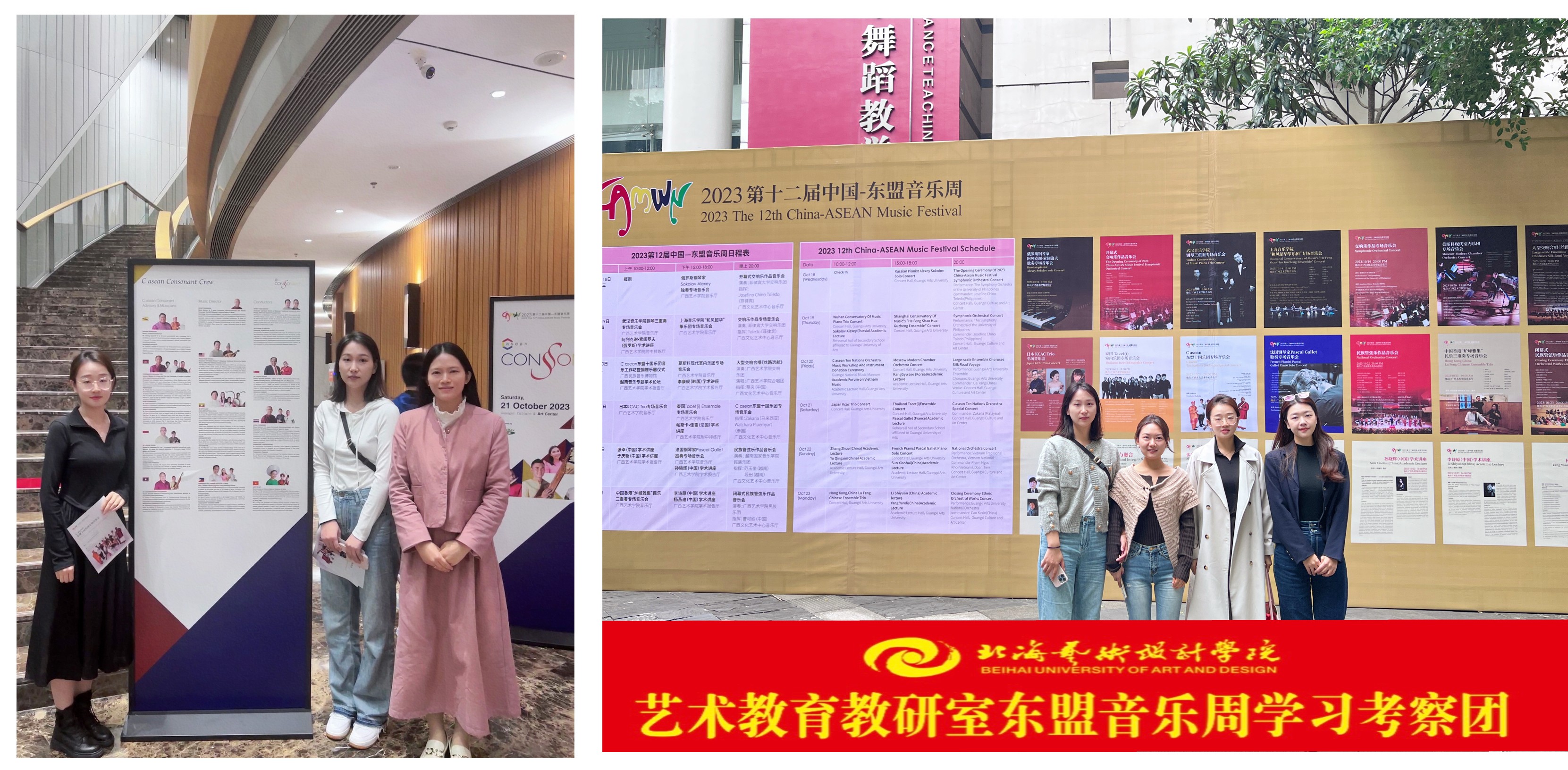 2023年10月18日-10月23日,2023年第12届中国—东盟音乐周在广西南宁举行。人文教育学院艺术教育教研室在学校、学院领导的支持与带领下,分批次组织音乐教师前往音乐周现场进行学习考察。