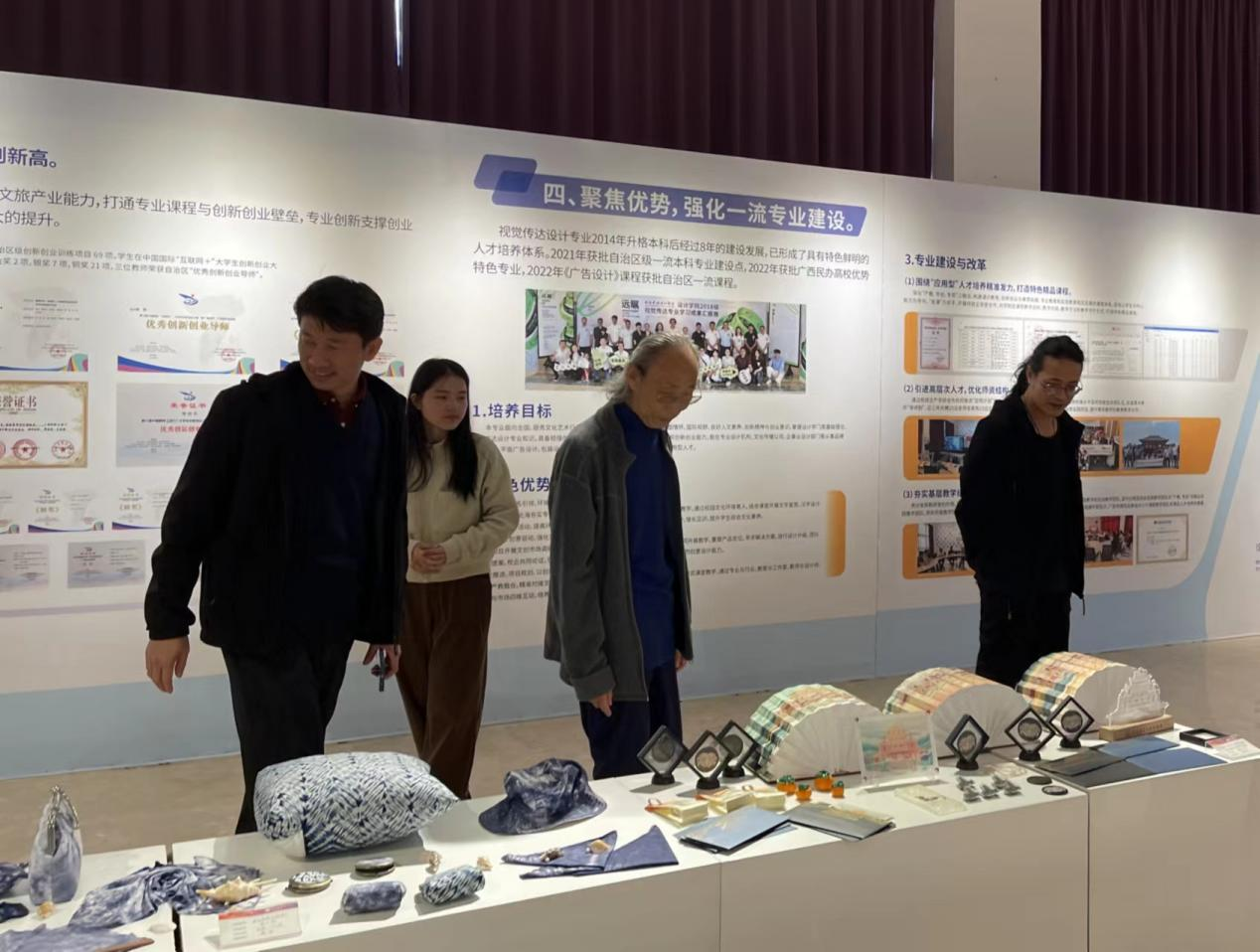 会后,在设计艺术学院副院长白建强、人文教育学院汉语言文学教研室主任蔡森的陪同下,李玉民教授一行参观了我校本科教学综合改革成果展,了解我校学生艺术创作情况,并对我校学生创新成果作品给予了高度评价。(杨婷卉、蔡森/摄)