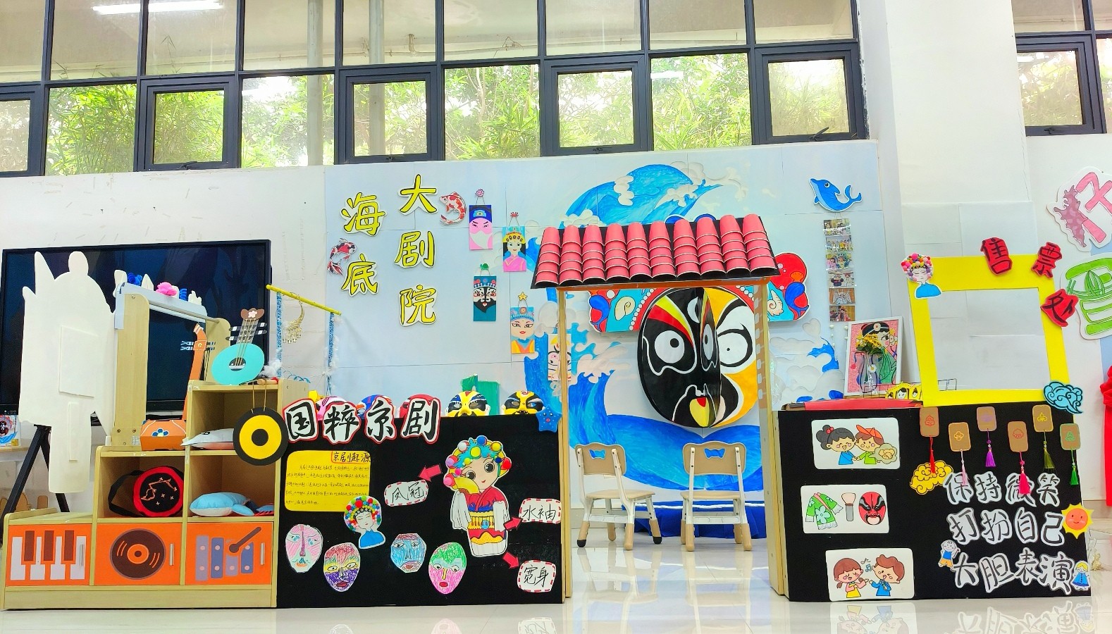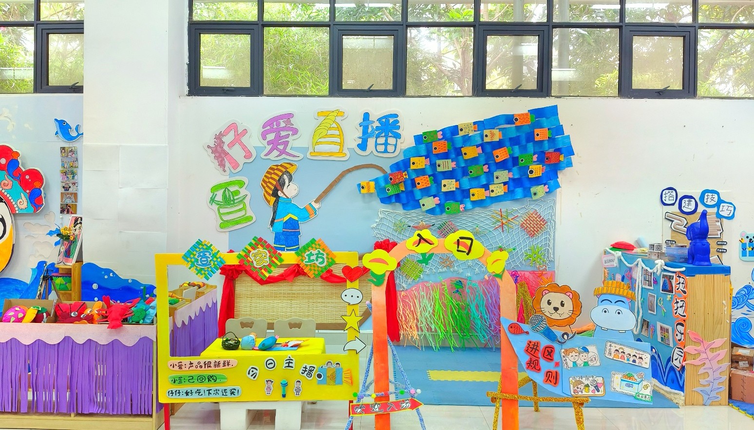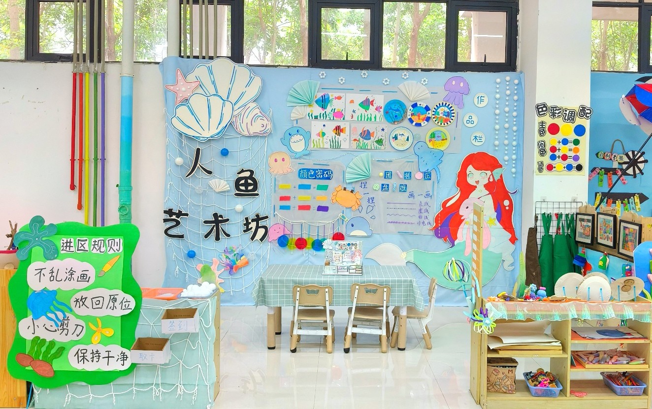 幼儿园环境创设课程是美术综合知识技能结合幼儿园实践工作的具体实操课程,专业指向性强。本课程使学生初步具备独立创设幼儿园环境的能力,树立正确的学前教育观念。本次结课汇报展共展出作品六组,均以幼儿园环境创设基本理论为基础,联系教育见习经验,并巧妙结合北海地方文化特色。此次汇报展是对学前教育专业阶段性教学成果的一次检验。