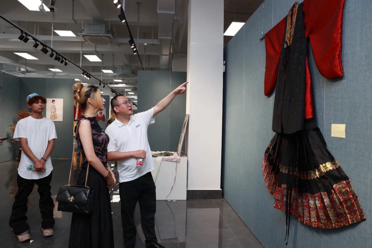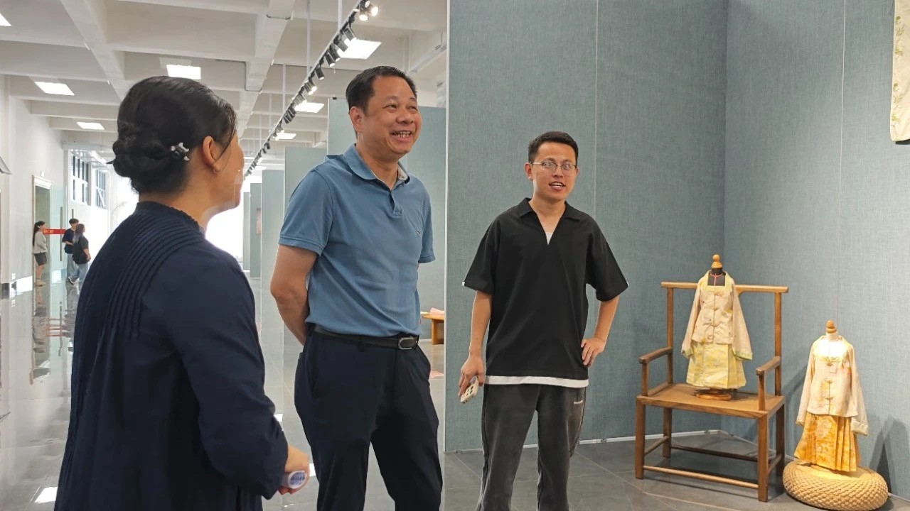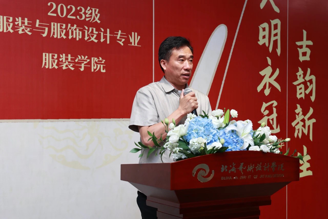 展览开幕式上,副校长陶立阳在致辞中表示,学校对中华优秀传统文化教育高度重视,此次作品展体现了学生对优秀传统文化的深刻理解与创新表达。展望未来,陶立阳副校长鼓励学生利用人工智能等科技手段,将传统与现代融合,推动中国传统服饰文化走向世界。