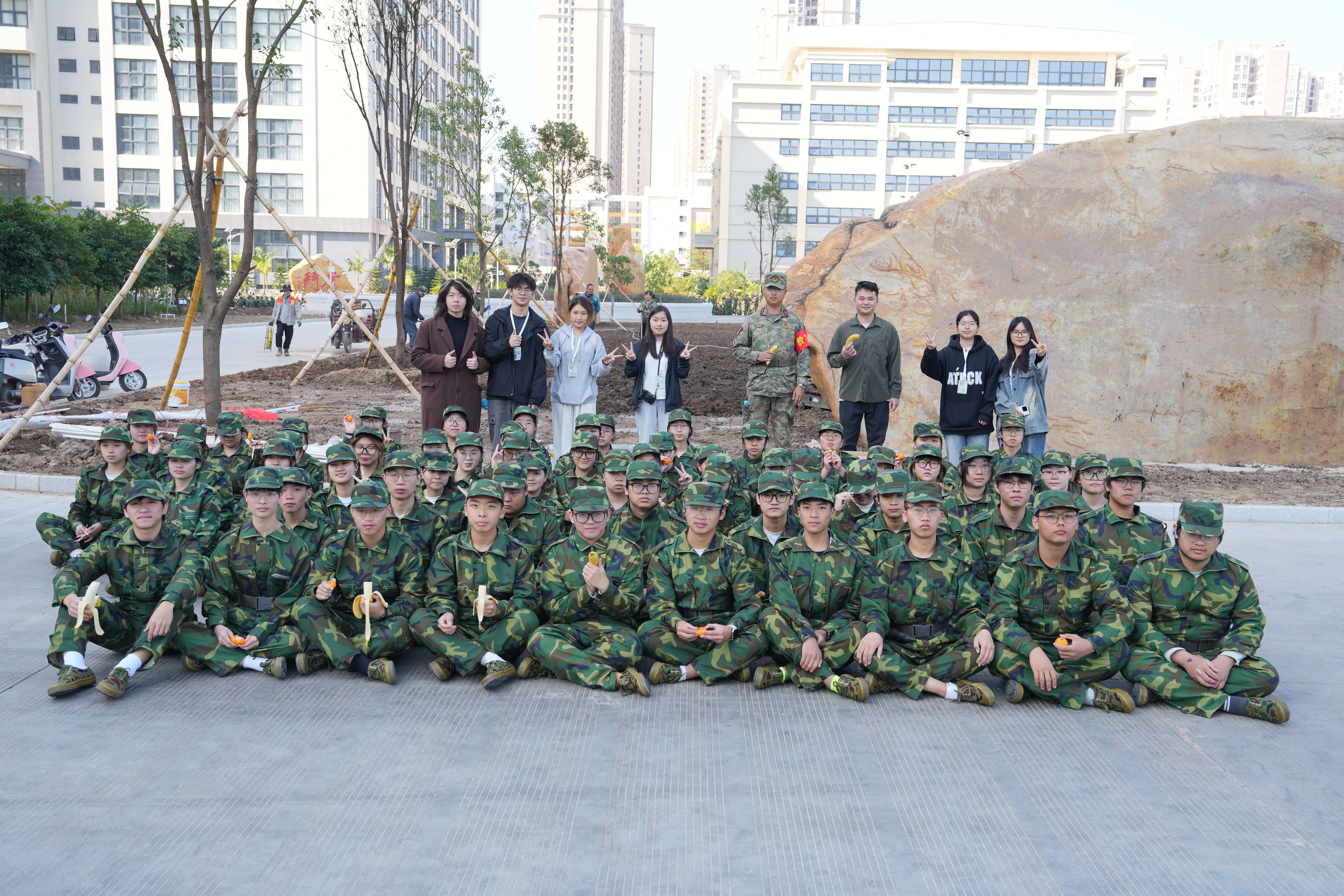 慰问活动中,团总支主席团首先向新生们传达了学院的关心与问候。随后,各班干部与团总支成员协同配合,按队列顺序将精选的水果与热饮逐一递至新生手中。现场气氛轻松融洽,新生们脸上笑意盈盈,大家表示将会在学院的温暖关怀下,更专注训练。