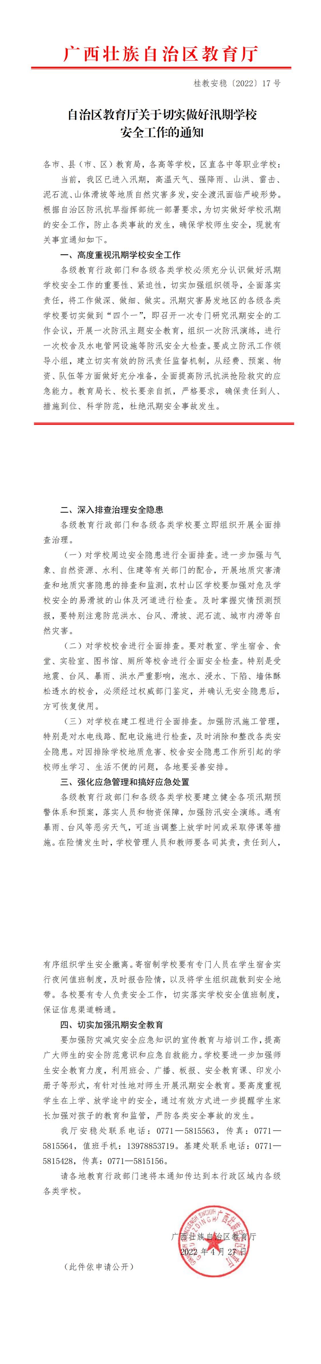自治区教育厅关于切实做好学校汛期安全工作的通知