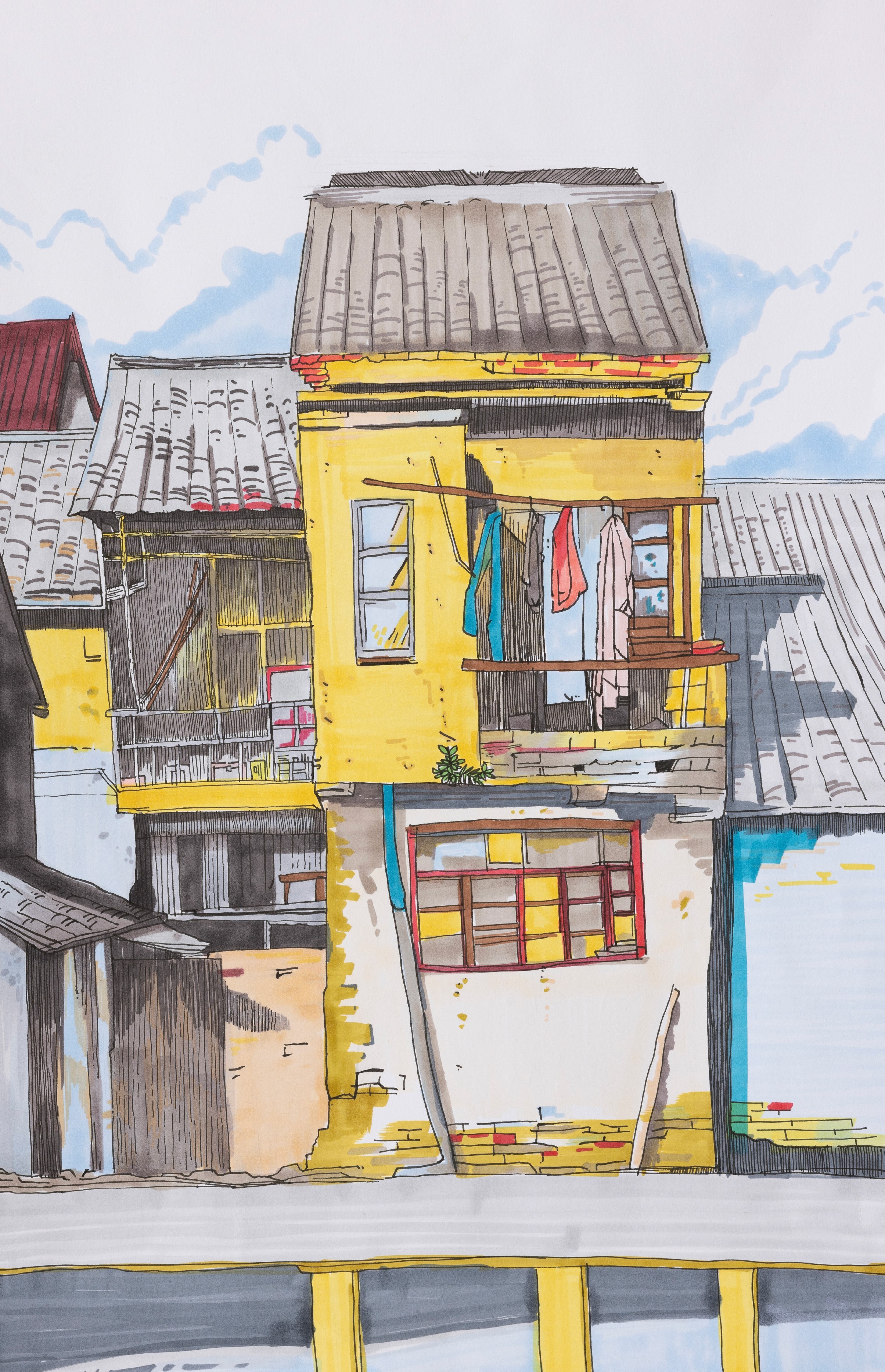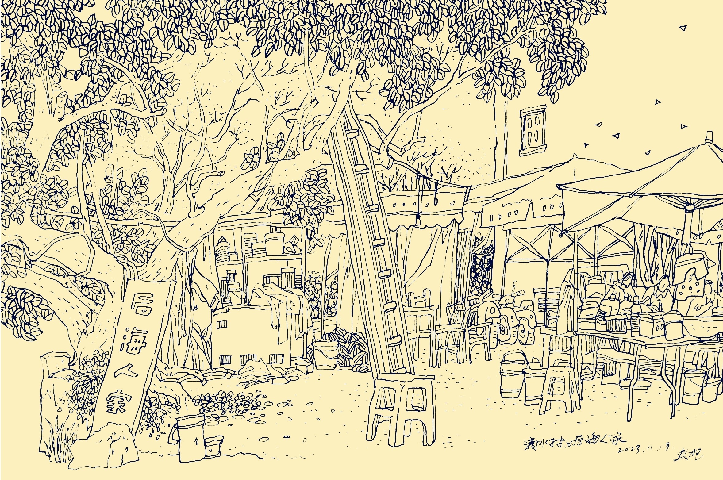 崔君旺  《滴水村》 速写
