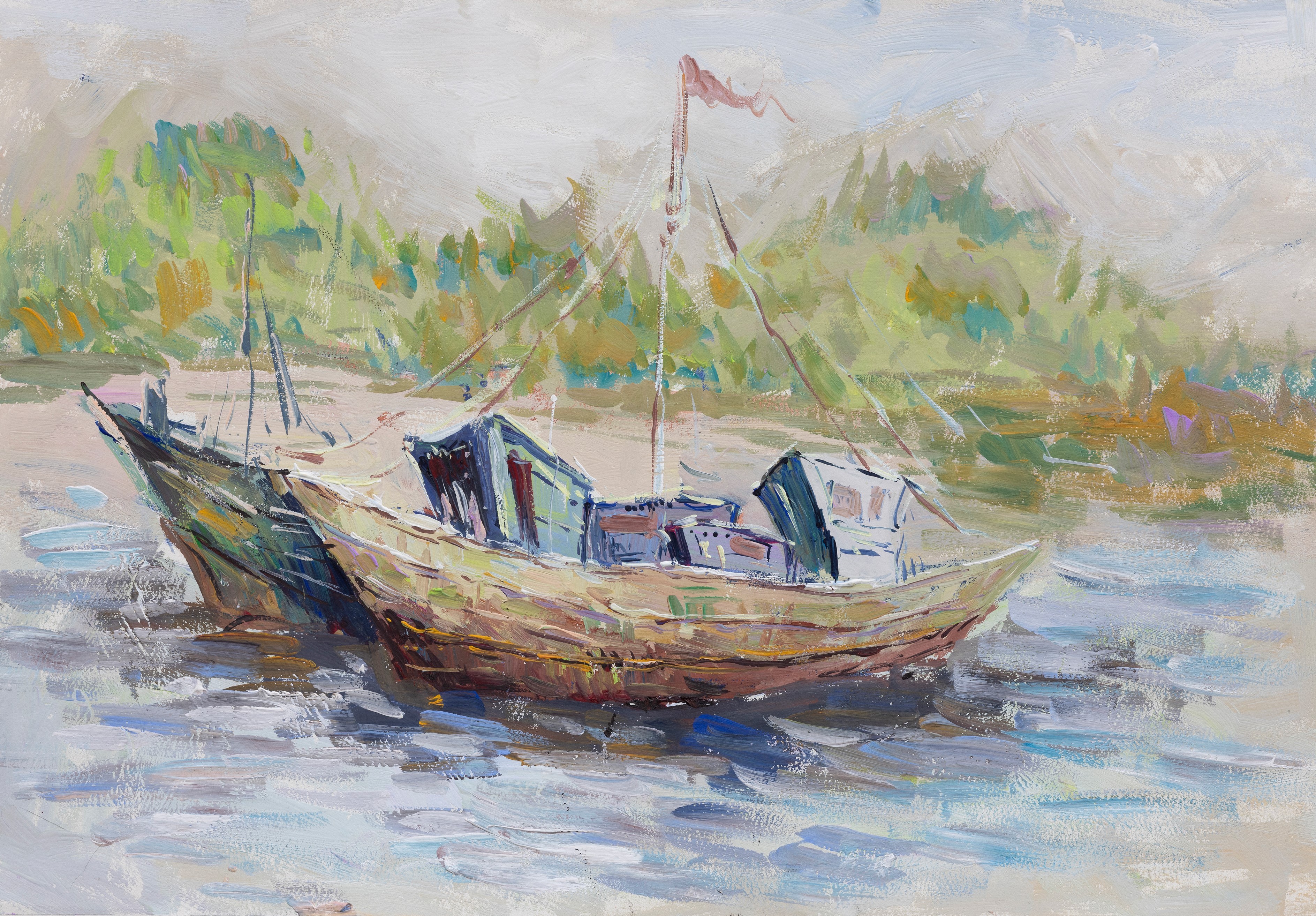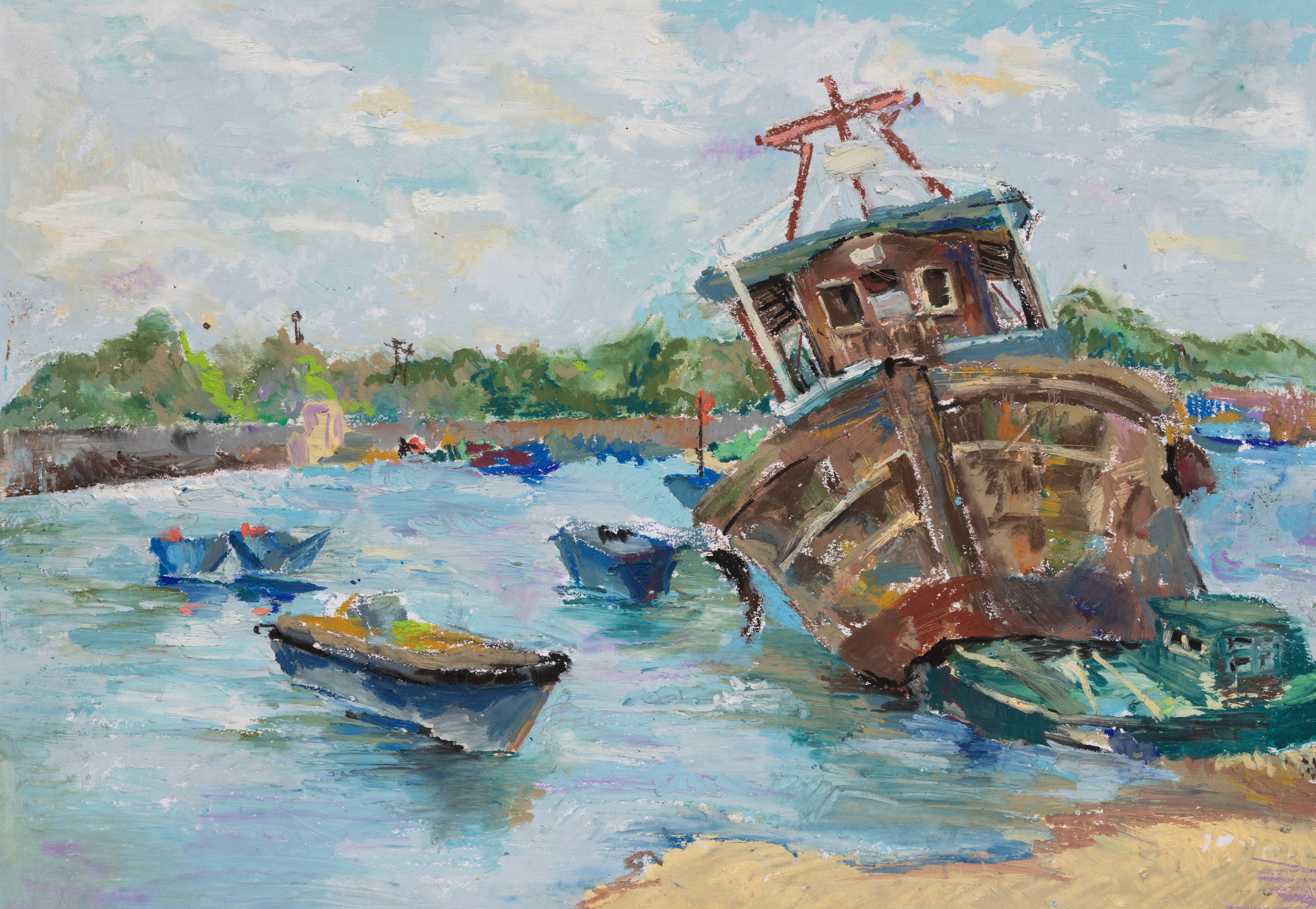 宋邦虎 《老码头写生》 中国画