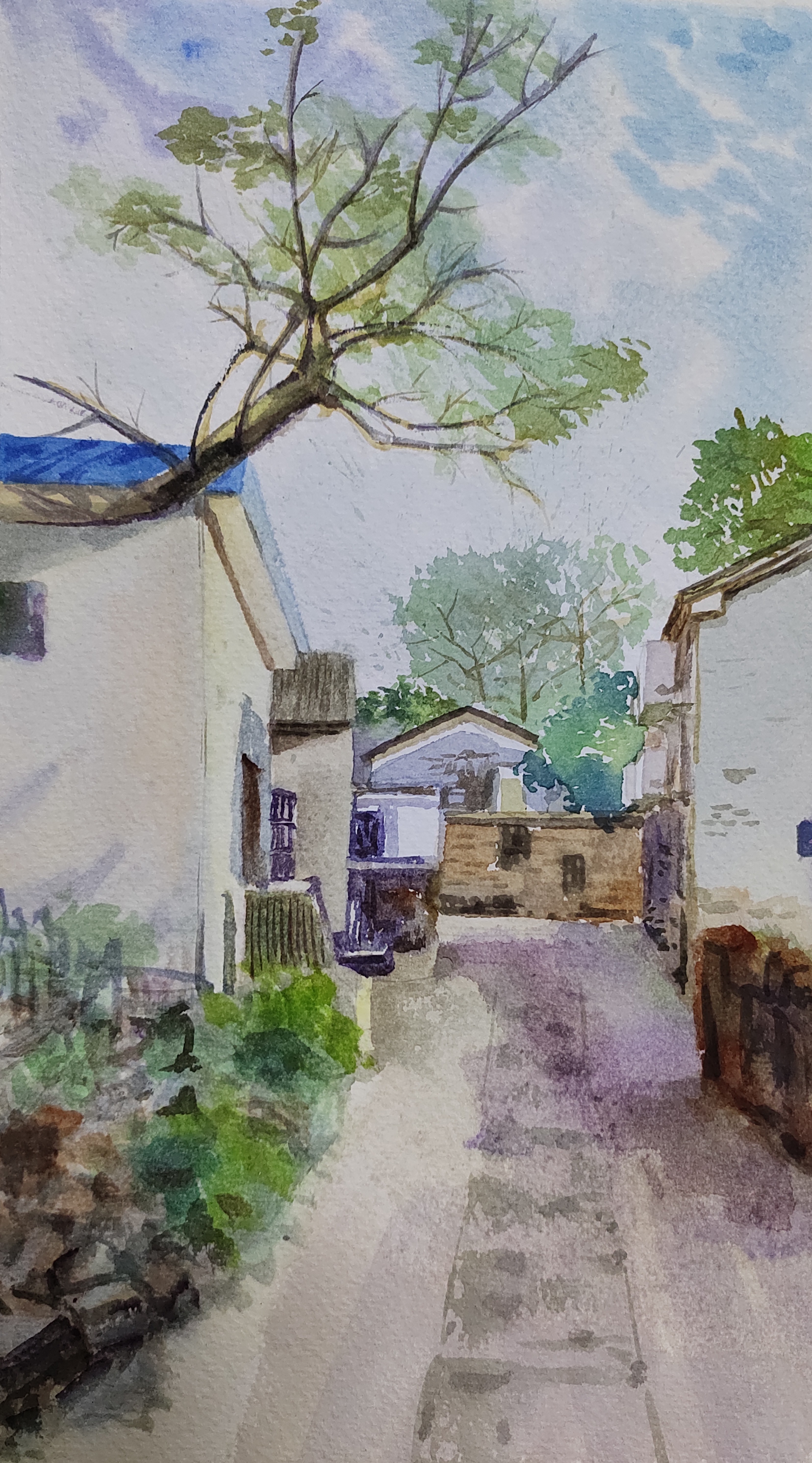 阁成萍 《小巷尽头》 水彩