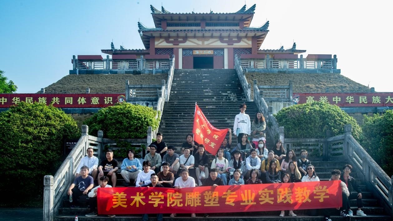 20231128日上午美术学院2021级雕塑专业《传统雕塑》课程师生40余人在美术学院副院长金凯婧和专业课教师矫石、林盼鑫的带领下,前往合浦汉代文化博物馆开展实践教学活动。