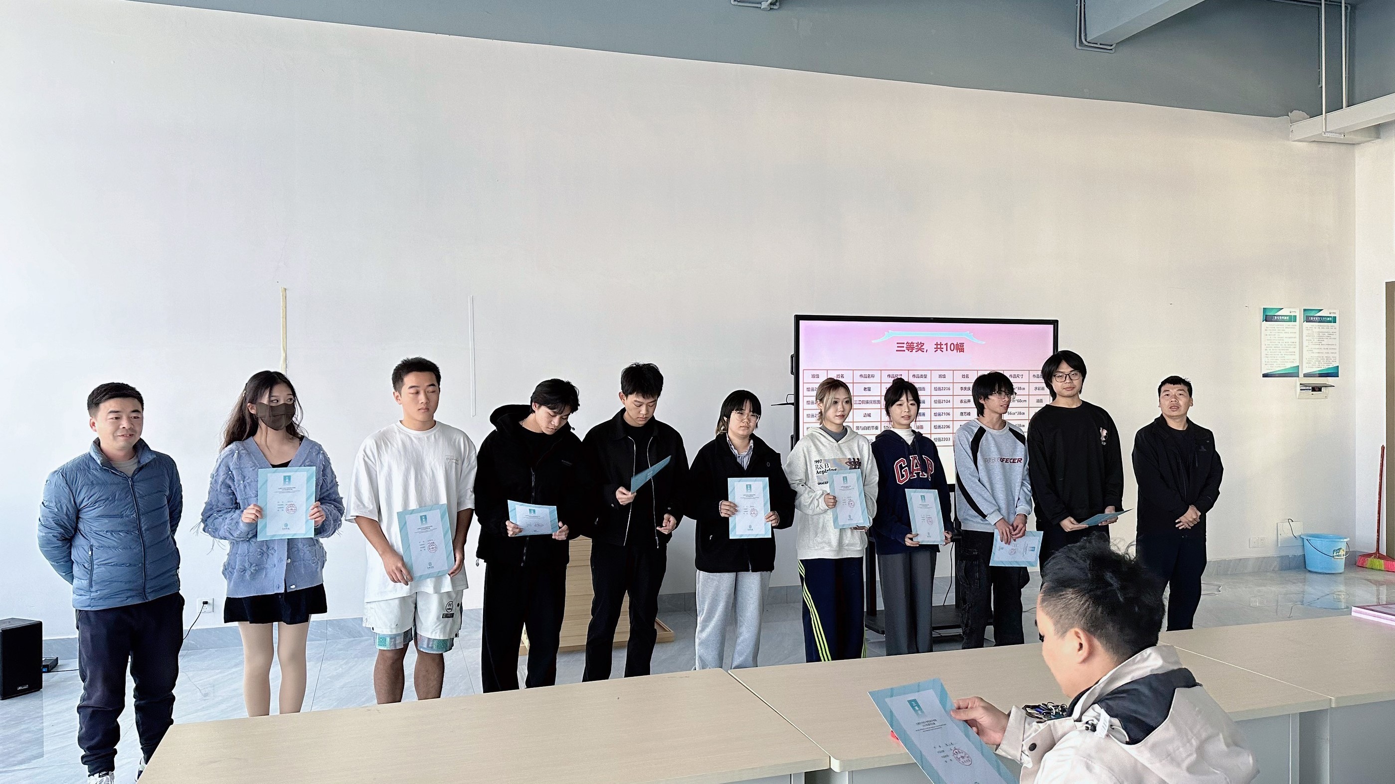 颁奖的过程中,美术学院肖玺院长、诸位教研室主任表达了对学生优秀获奖作品的肯定,和对于获奖学生和全体学生未来的美好期望,希冀美术学院绘画专业全体学生可以继续努力奋进,拥有更为美好的未来。(乔慧康,关懿恒 摄)