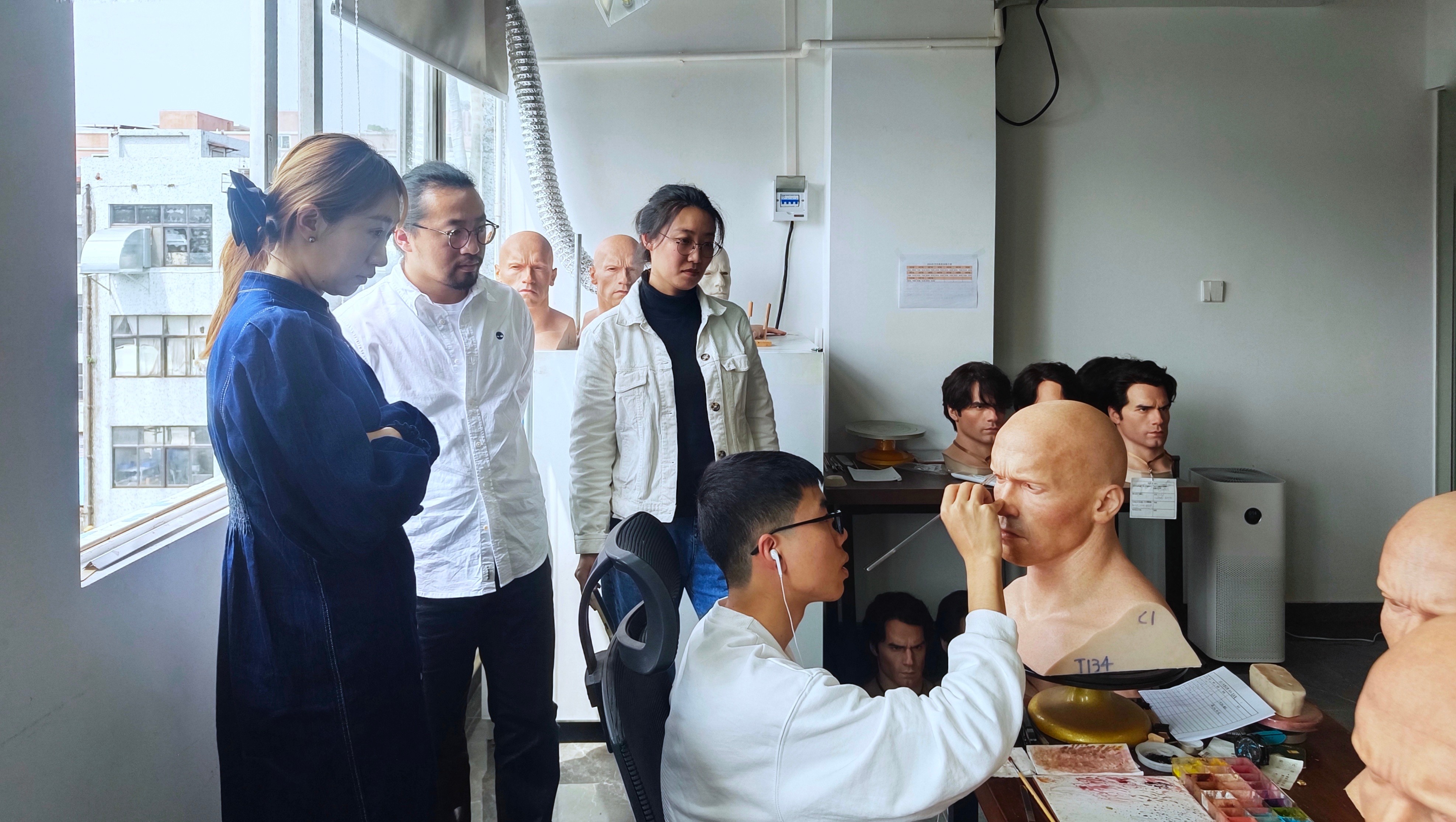 该工作室主要从事超写实雕塑和ai智能仿生人的量产及研发,是较新兴的行业,具有较好的发展前景。在发展过程中,面向我院绘画、雕塑、摄影三个专业的学生在实习就业、课程、项目等方面均有较多需求;Queenstudios超写实工作室负责人表示对学校和企业联合开展科研、创作项目十分期待,以求在提高学生创新能力与实践能力的同时,提升企业自身社会形象与知名度,增强企业的品牌影响力。(金凯婧 孔令石 摄)