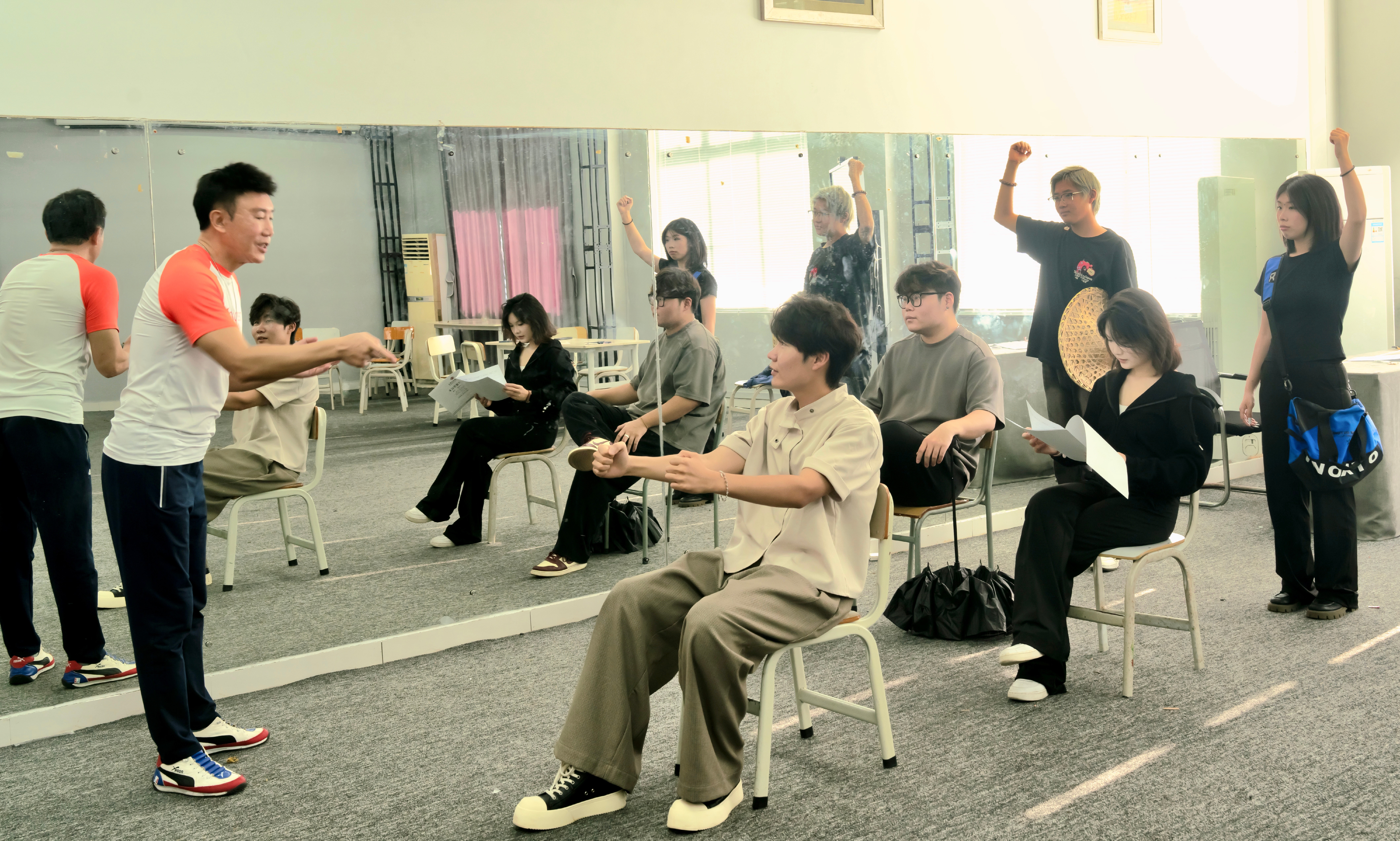 据此次项目的总编导王玥教授回忆,今年4月获悉中国科协通知时,原定团队已赴京实习,只得紧急挑选大一(现大二)年级5名学生重新组队。“五一”假期师生封闭打磨剧本、拍摄剧照、填报材料,又要合同审批、提交流程,学院办公室、教研室多位教师冒雨往返,“一张立项书背后是一整座校园的接力”。随着首演日程将至,传媒艺术学院播音与主持艺术专业的排练厅灯火通明。播音与主持艺术专业的学生在王玥教授的指导下,对台词、走位、灯光、音效等进行最后一轮排练,每一次的练习都是为了12月11-12日在校西区大礼堂呈现更好的作品做准备,同学们积极配合着王玥教授拍击节拍器——“滴答、滴答”,那是毛江森院士当年在实验室时间秒针的走动,如今被复刻成一句句有情感的台词。