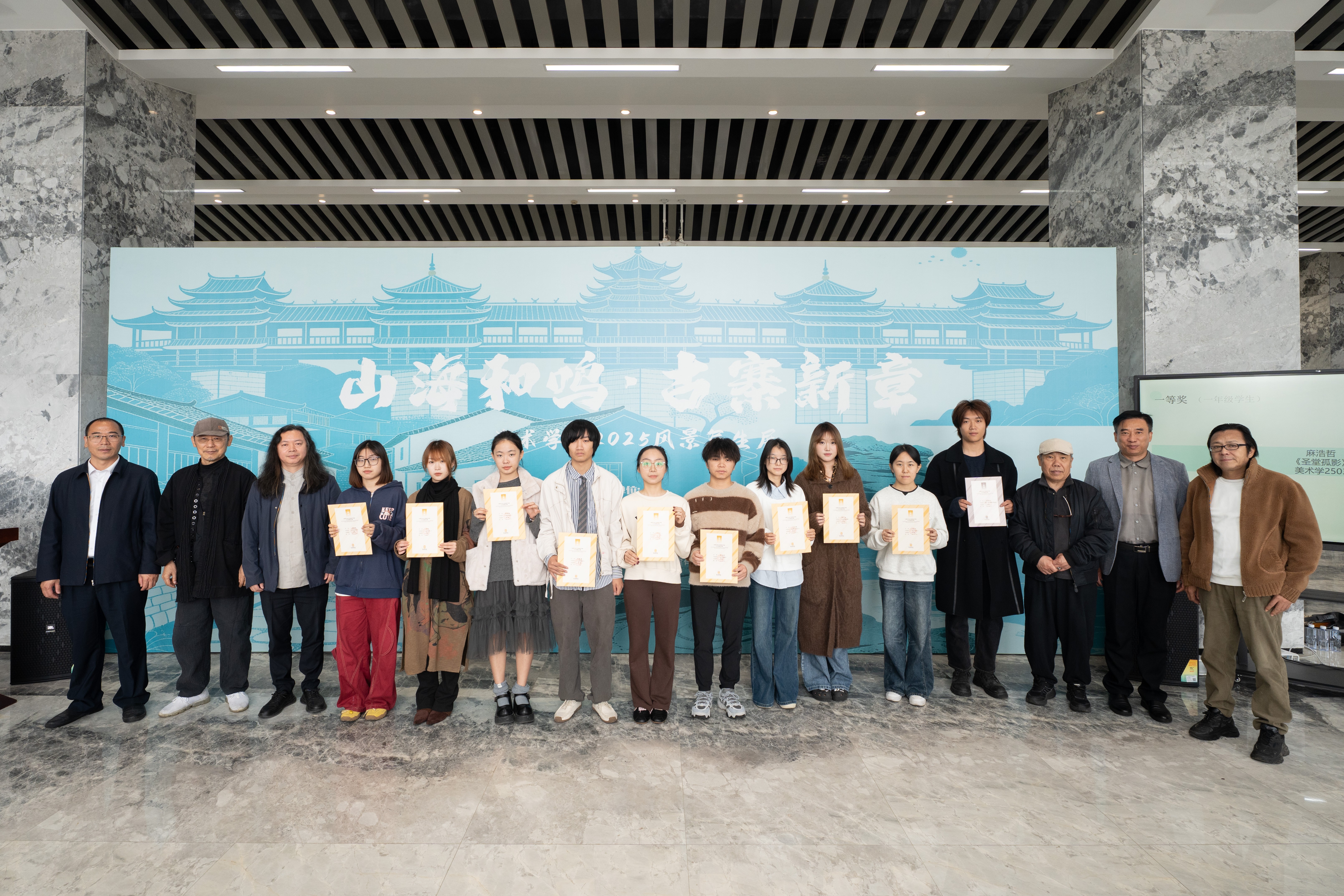 为鼓励学生积极参与社会实践和到自然中写生,激励他们创作出更多更好的艺术作品,本次展览设置了一二三等奖,在展览开幕前夕,学院成立了评委会并进行了严格的评审会议和评审流程,共遴选出一等奖10人、二等奖20人、三等奖30人。在颁奖环节,各位领导及嘉宾为获奖学生颁发了获奖证书。获奖学生们脸上洋溢着喜悦和自豪,他们的努力得到了认可和肯定。
