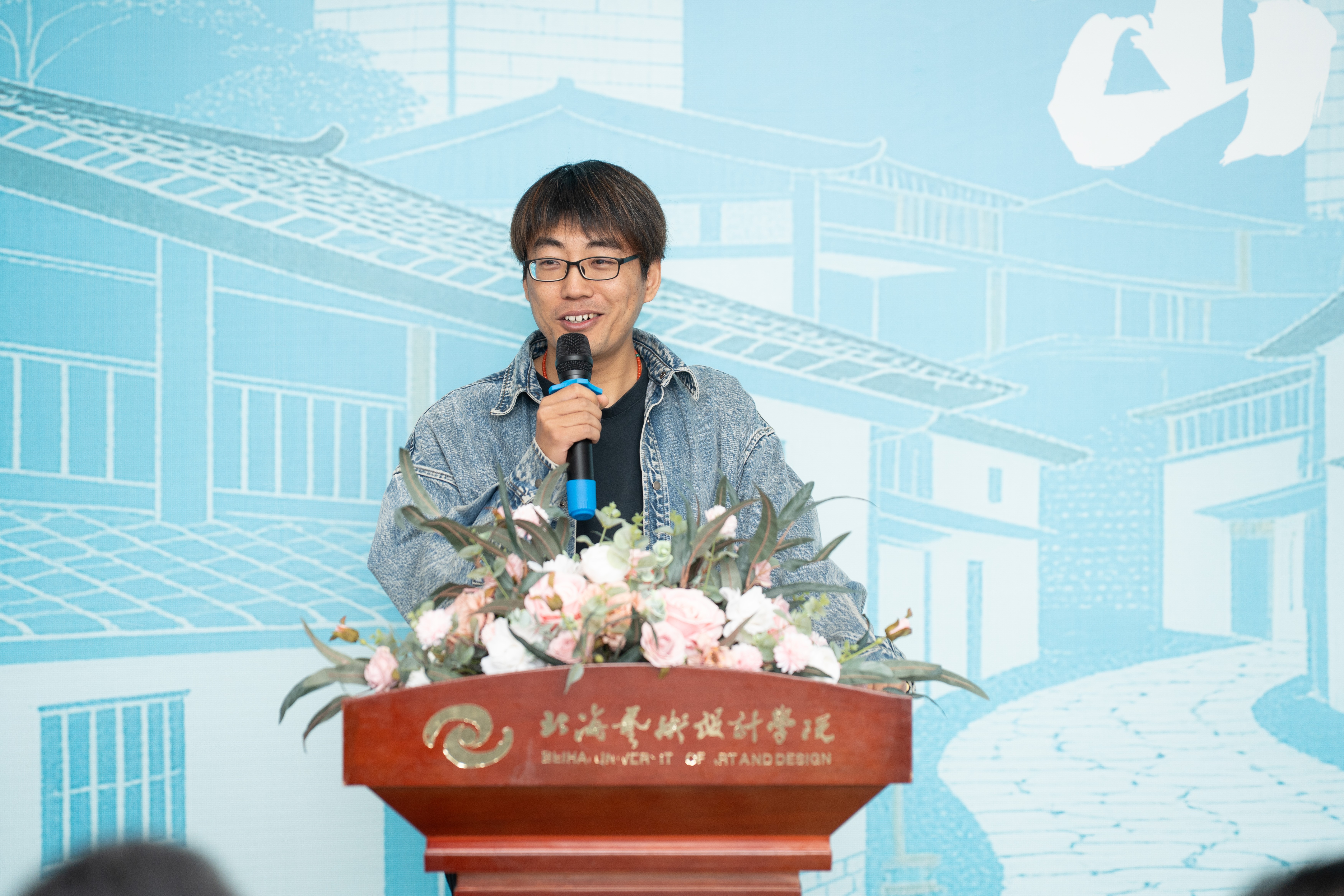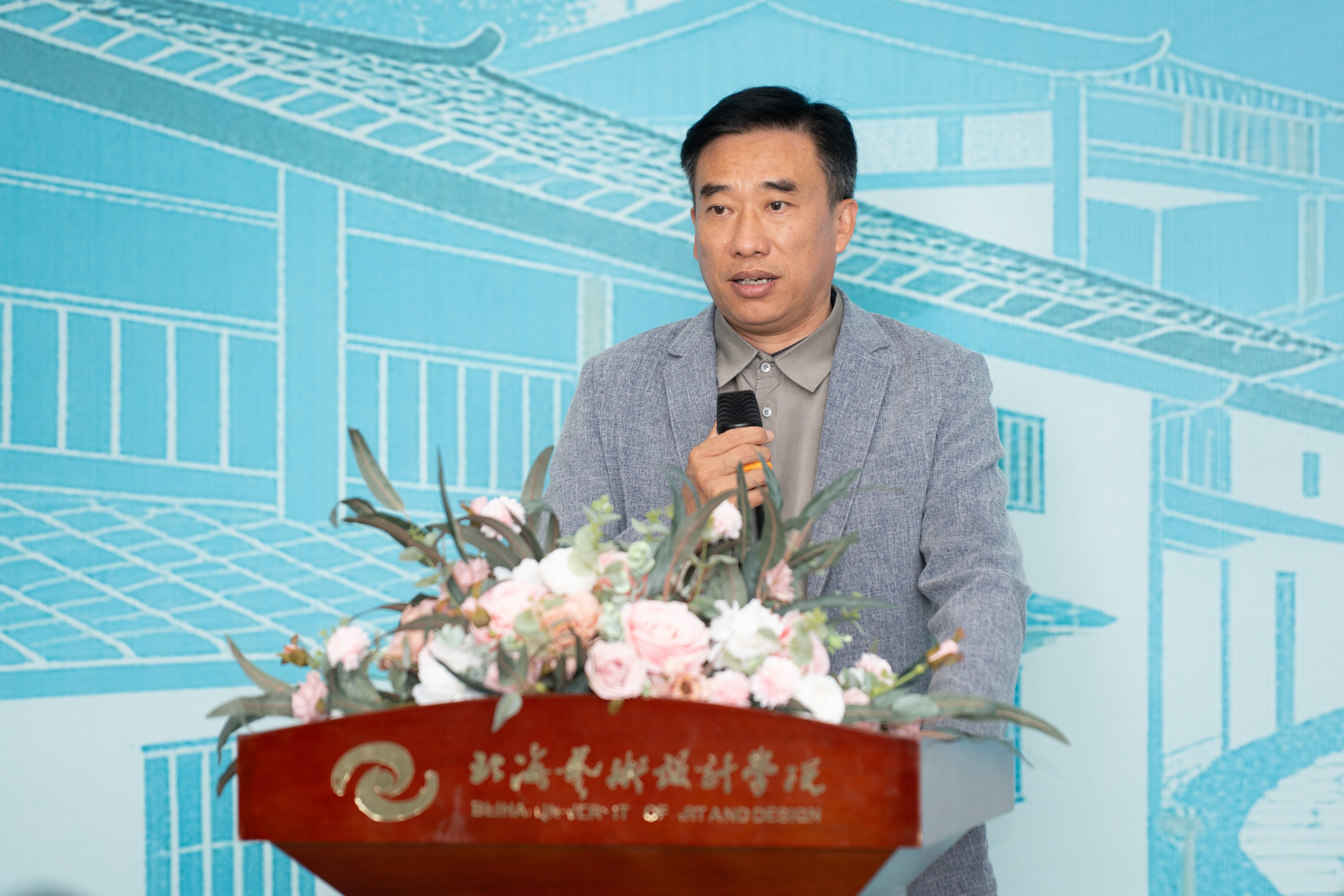 随后,刘斌教授致辞发言。其首先向莅临开幕式的各位领导与嘉宾致以诚挚谢意,同时也对参与指导的教师团队表示感谢。刘斌教授提到,本次写生活动不仅是学科建设中的一项重要实践教学,更是师生共同走进自然、领略美术魅力的宝贵契机。其指出,广西独具特色的自然风光与人文底蕴,为写生创作提供了充沛的素材与灵感来源;写生作为美术教育的关键组成部分,帮助学生通过艺术的眼光感知世界,并在此过程中取得明显成长,本次展览也充分体现了同学们的青春活力与对自然的深度感知。谈及教育理念时,刘斌教授强调,教学团队旨在通过这门课程培养学生对自然的敏锐觉察与对美的细腻感知。他们期待学生不仅能生活,更能学会品味身边的美好,唤醒对自然与人文之美的自觉感知。每一次写生实践,都是一次引领学生发现并感悟生活之美的教学尝试。