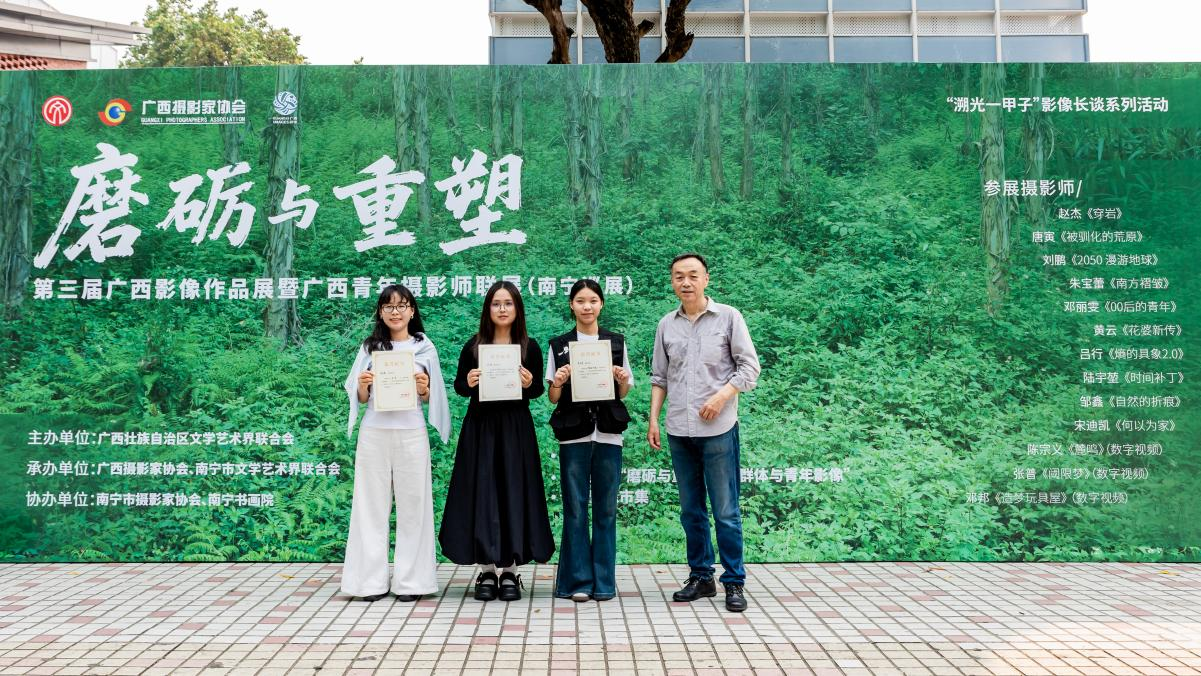 本次展览由广西摄影家协会主办,以“磨砺与重塑”为核心主题,涵盖户外青年影像市集、作品展览、创作分享、专家对谈等多个环节,为广西青年摄影师提供了展示才华、交流思想的重要平台。作为学校摄影专业实践教学的重要延伸,此次参展旨在让学生走出课堂,近距离接触行业前沿,锤炼实践本领,同时展现学校摄影专业的育人成果。