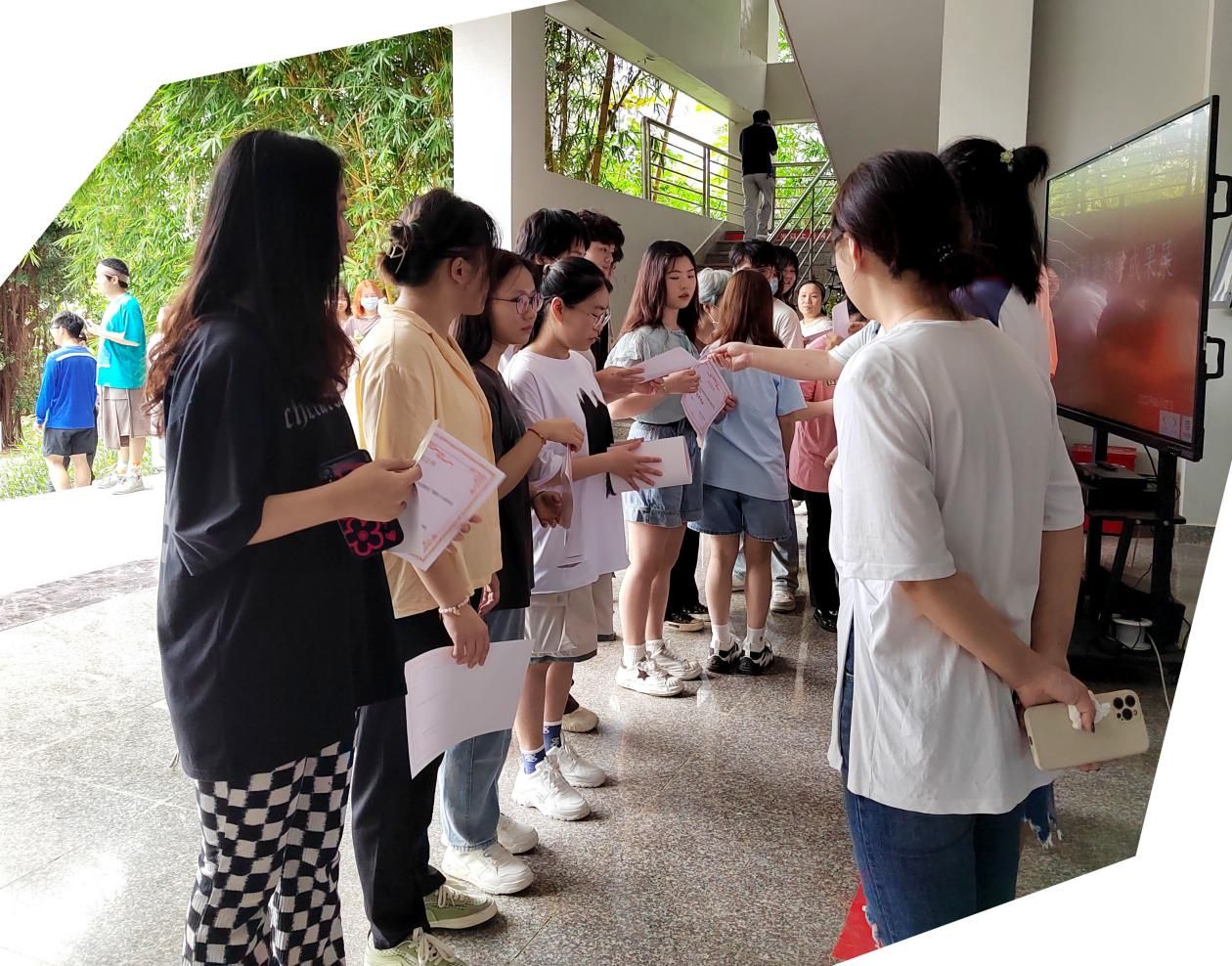 (院领导给学生颁发“优秀作品获”获奖证书现场)