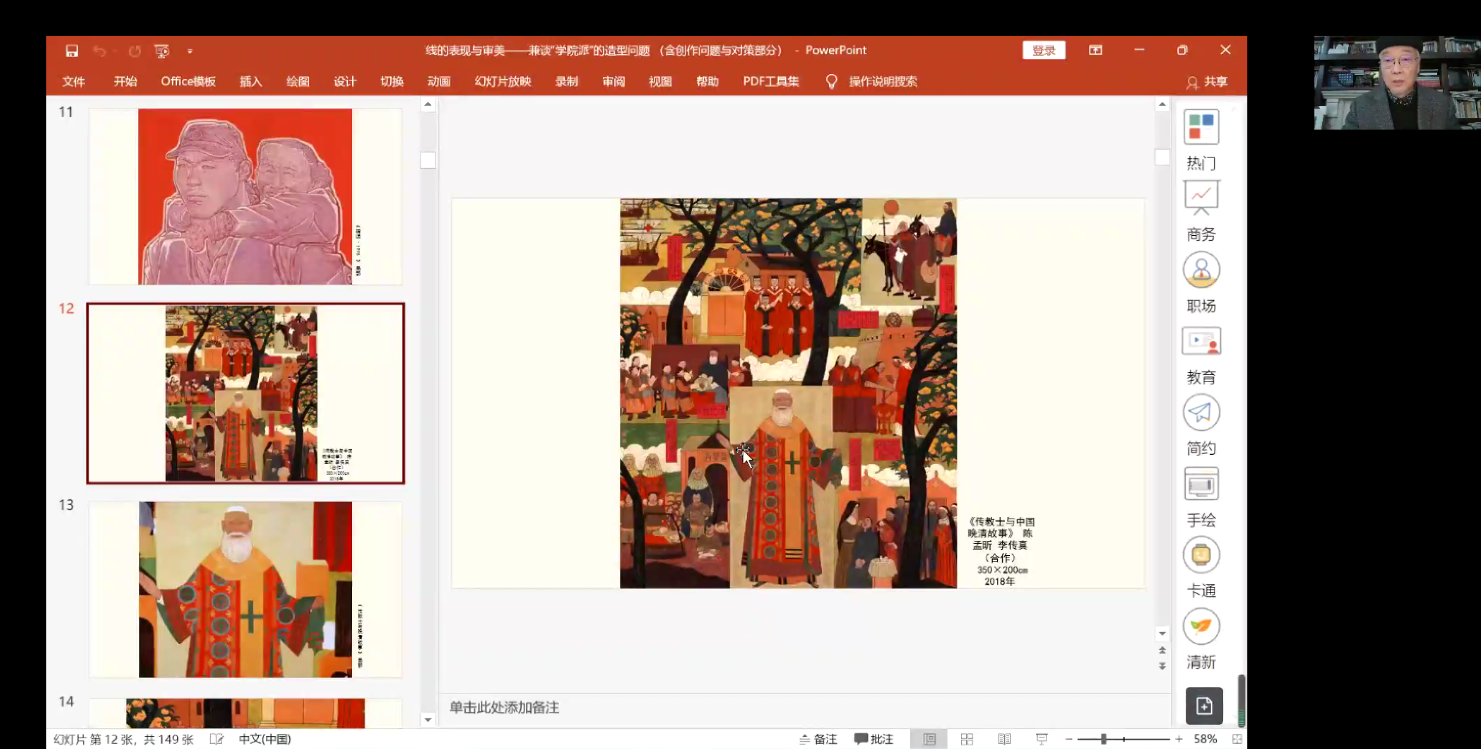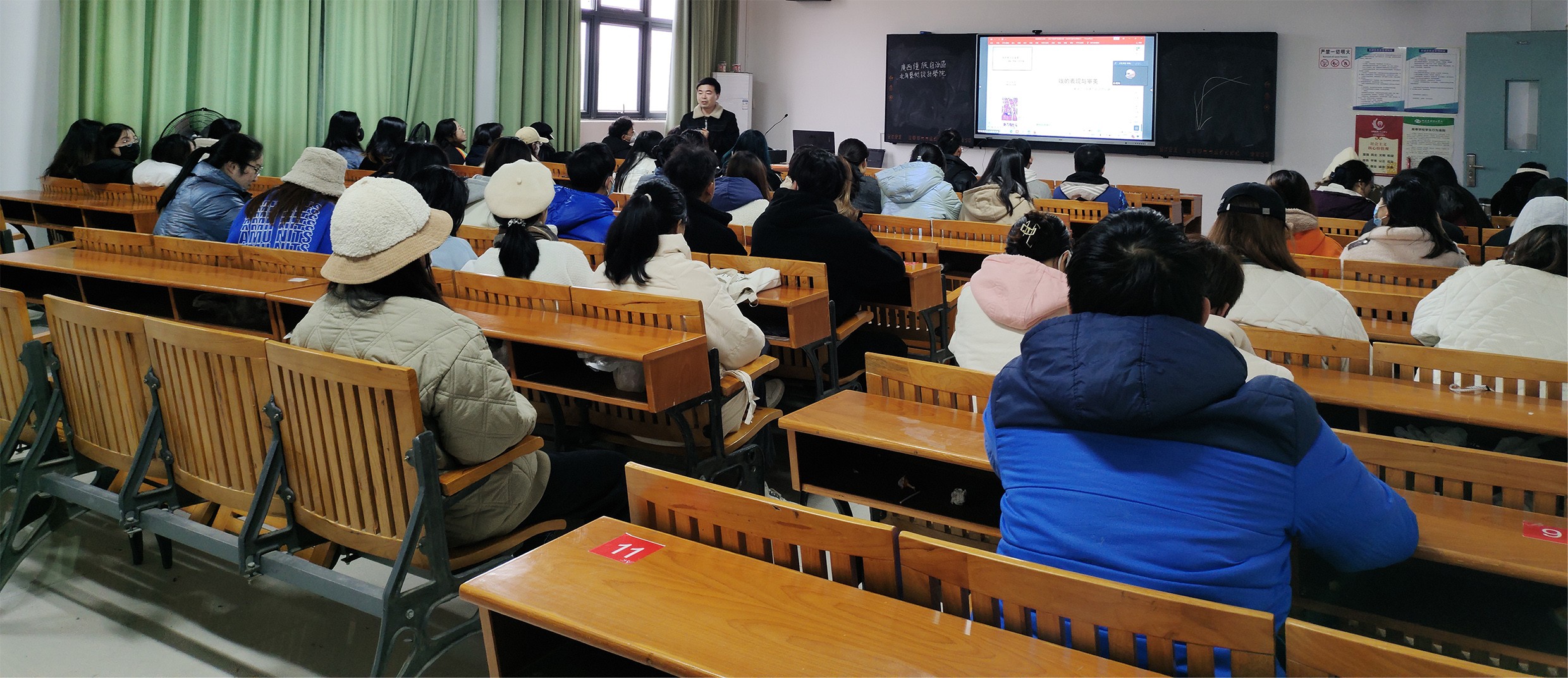 2021年12月28日上午9点,陈孟昕教授为美术学院绘画专业进行《线的表现与审美——兼谈“学院派”的造型问题》讲座,本次讲座由线上会场以及两个实体会场组成,近300名学生参与,由美术学院综合办主任肖玺主持,综合办副主任陈建江组织实体会场。